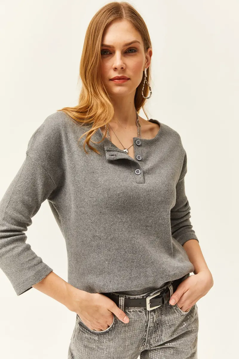 Kadın Füme Düğmeli Şardonlu Salaş Kazak KZK-19000721-Füme