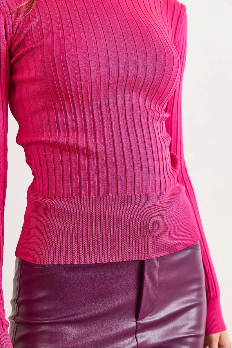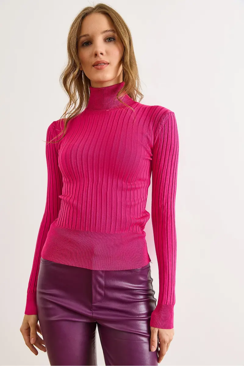 Kadın Fuşya Balıkçı Yaka Kalın Fitili Triko Kazak KZK-19000872-Fuşya