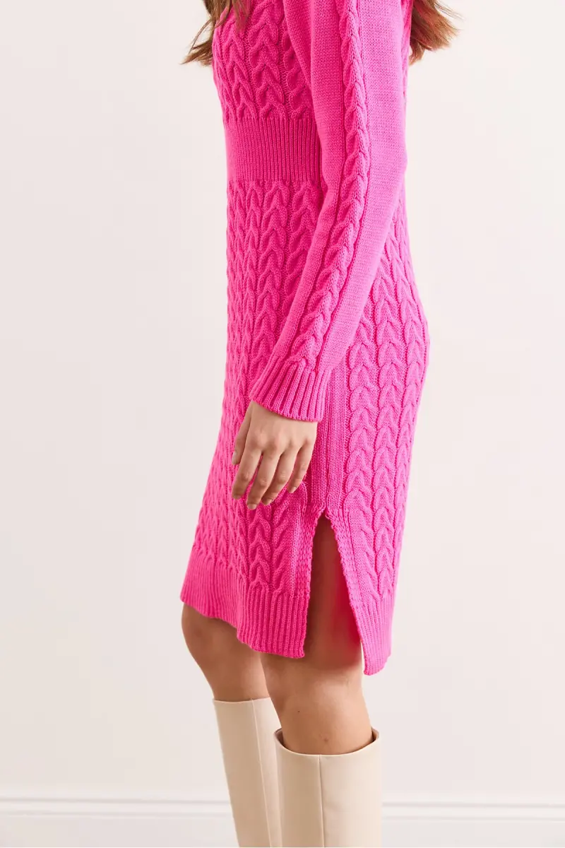 Kadın Fuşya Beli Bantlı Yırtmaçlı Saç Örgü Mini Elbise ELB-19002289-Fuşya