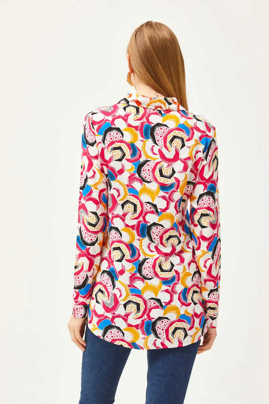 Ushbu zamonaviy va zamonaviy ko'ylak, kiyim-kechak shkafingizning ajralmas qismiga aylanadi. Ayollar uchun fuchsiya rangli geometrik naqshli to'qilgan ko'ylakni hoziroq buyurtma qiling!