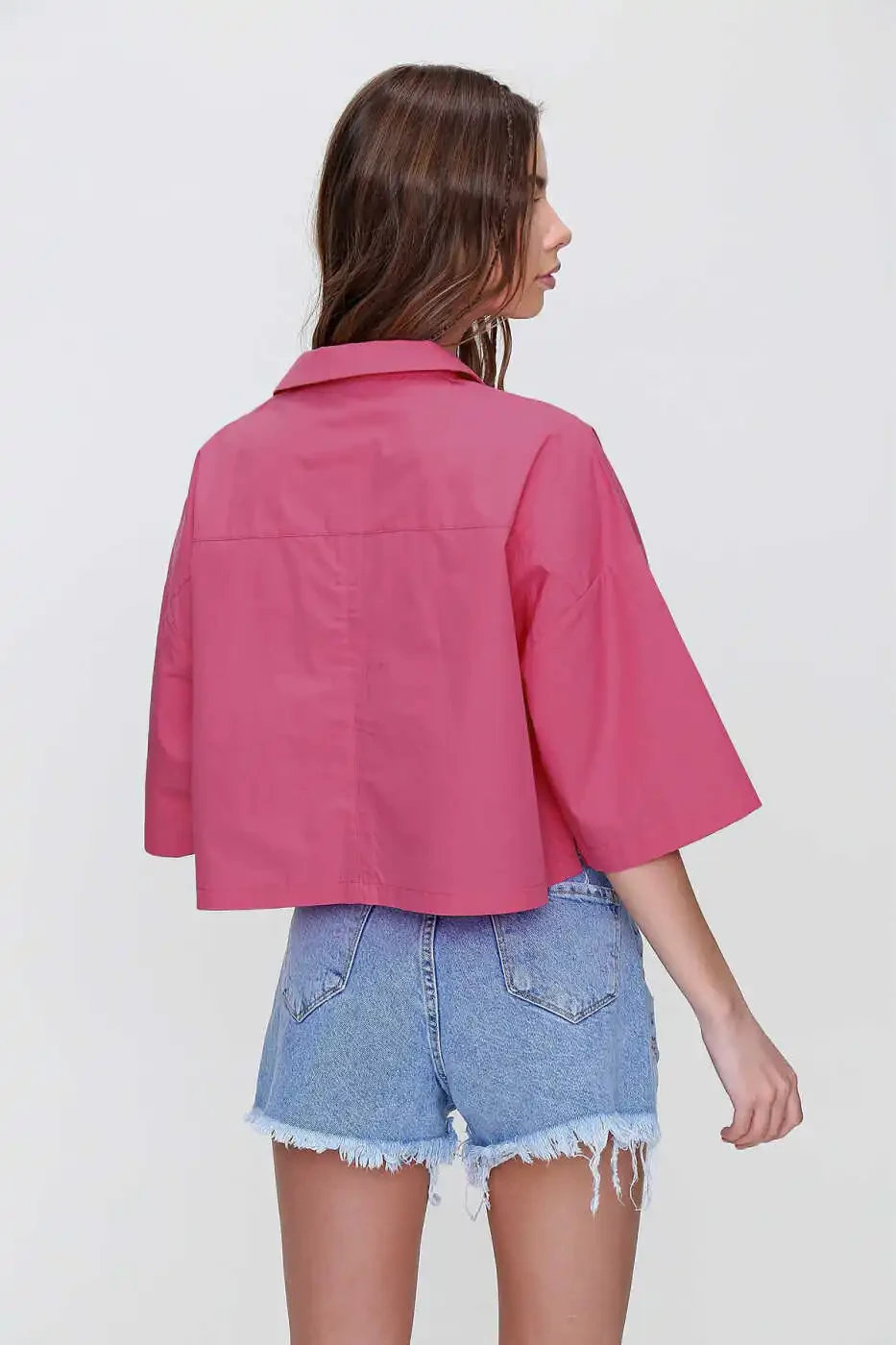 Siz de şıklığı ve konforu bir arada arayanlardansanız, Kadın Fuşya Zarf Cepli Crop Poplin Gömlek ALC-X6045'i hemen sepetinize ekleyin!