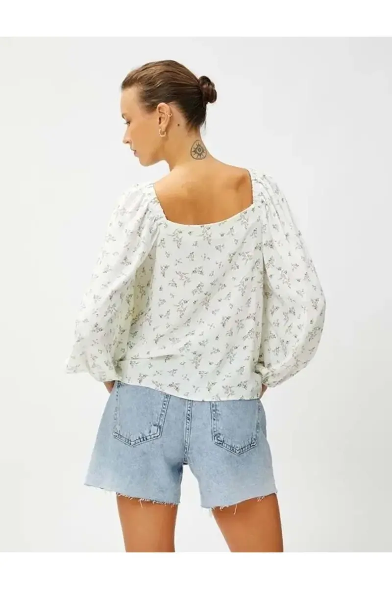 Kadın Giyim Bluz 3SAK60415UW Yeşil Desenli Yeşil Desenli-Renkli