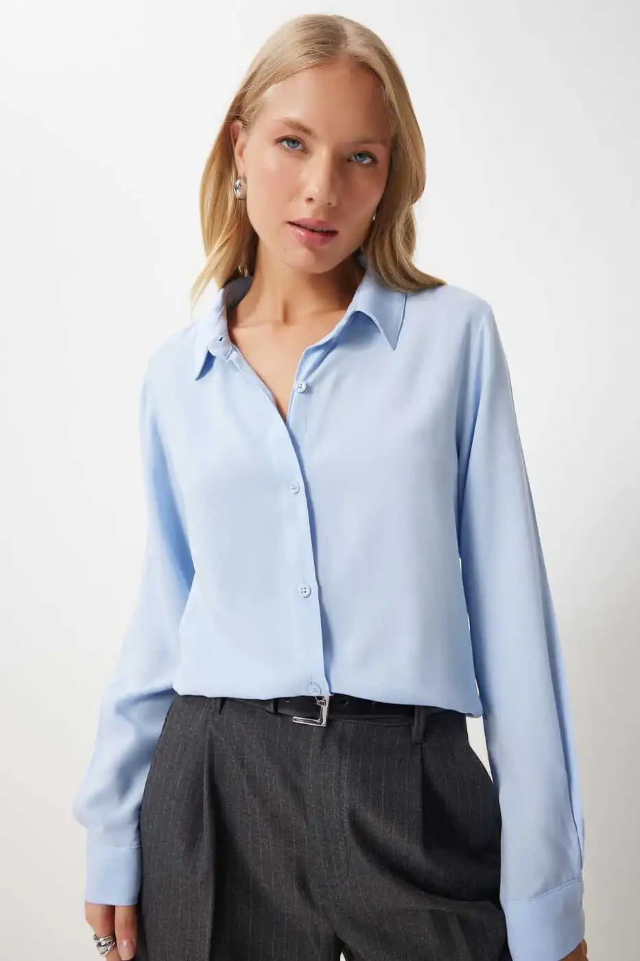 Women's shirt, sky blue shirt, viscose shirt, relaxed shirt, long-sleeved shirt, button-down shirt, regular fit shirt, everyday shirt, stylish shirt, Trendyol shirt