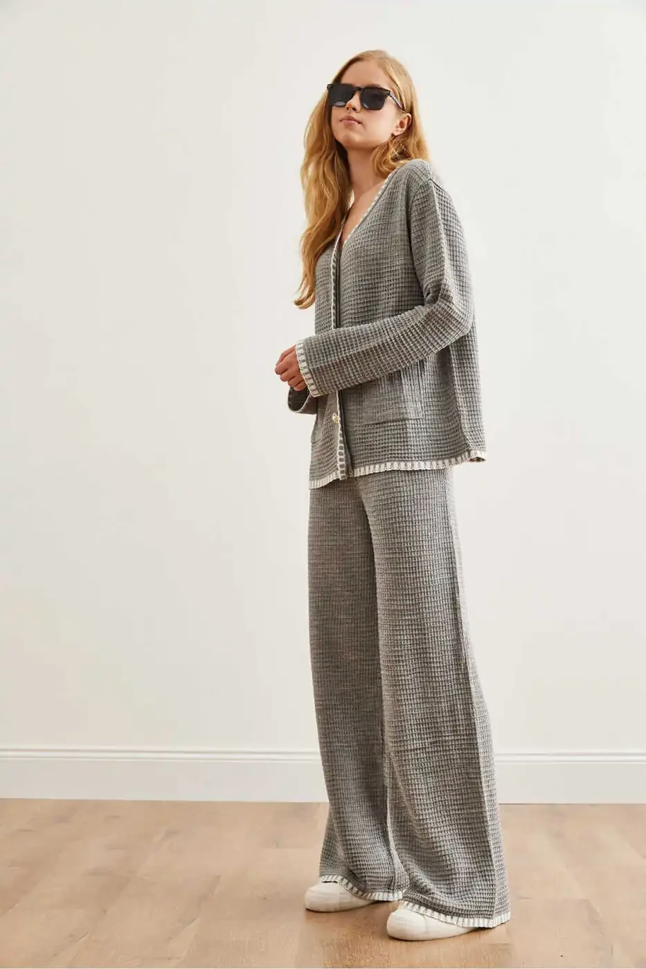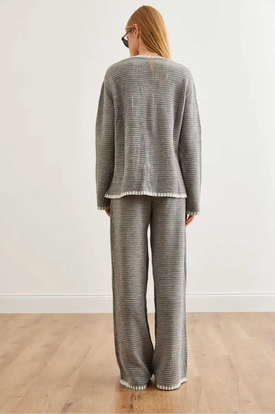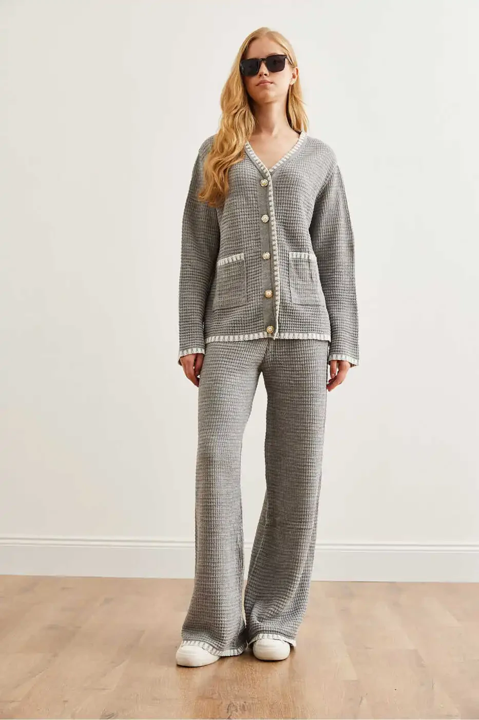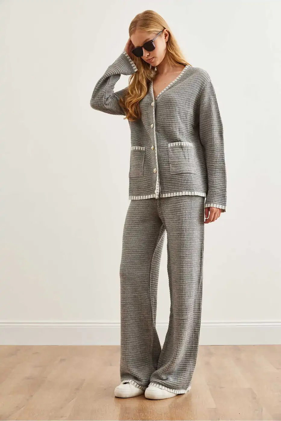 Kadın Gri Biye Detaylı Triko Takım: Stil ve Konfor Bir Arada