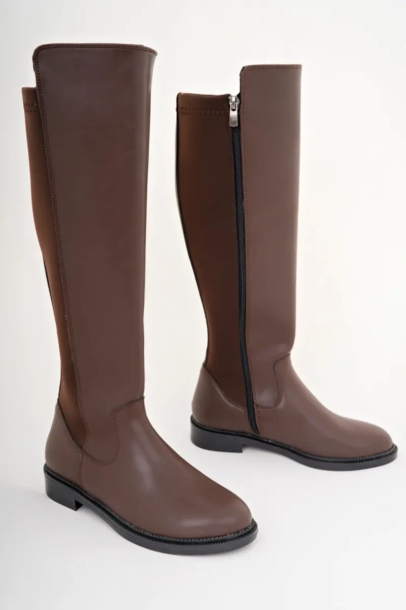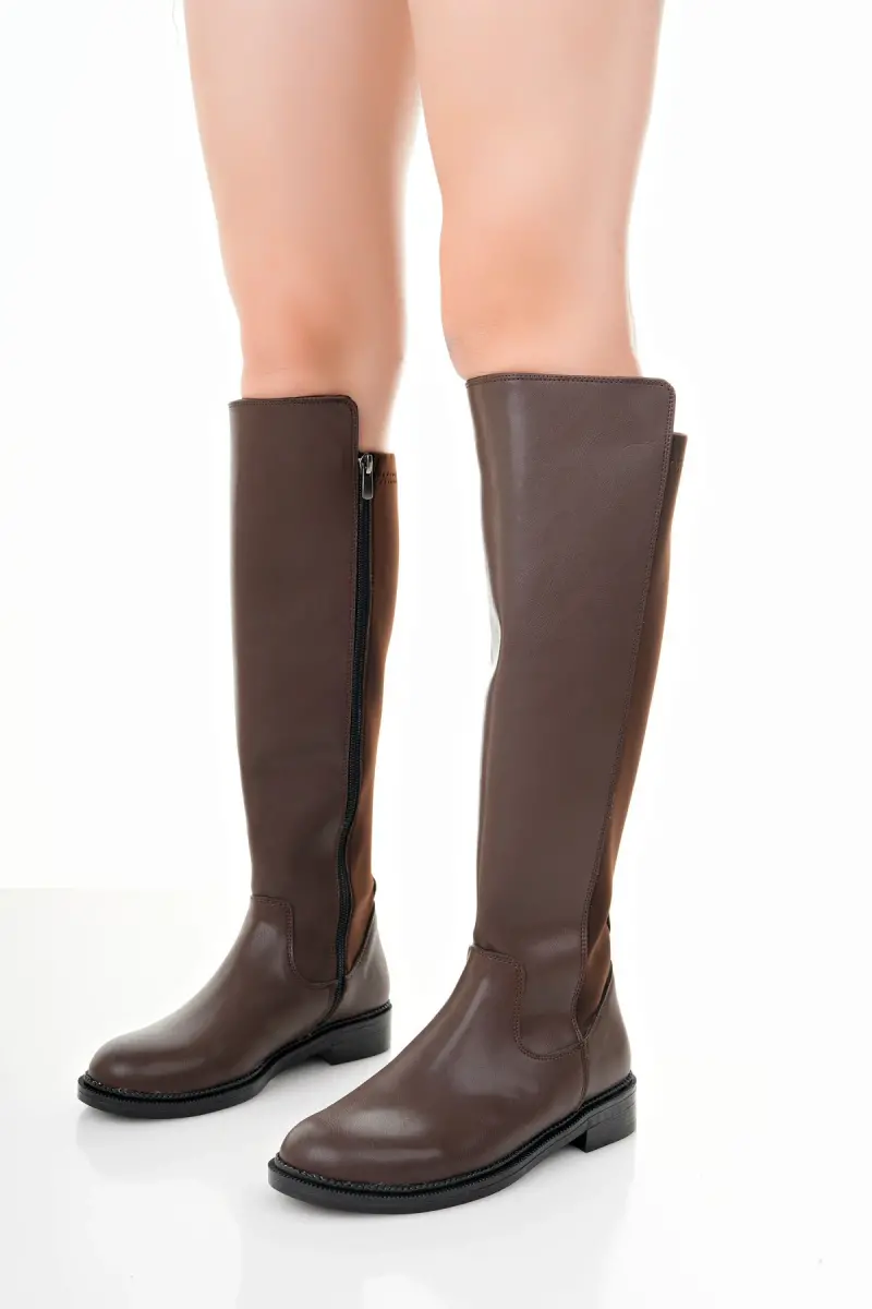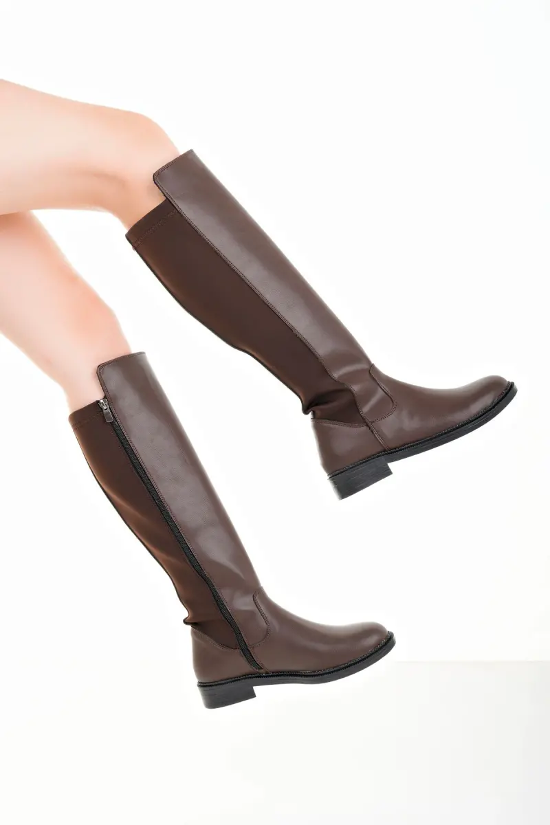 Kadın Günlük Çizme Lastikli Strec Enpar kahve Cilt 41-42- Mevcuttur-Kahverengi