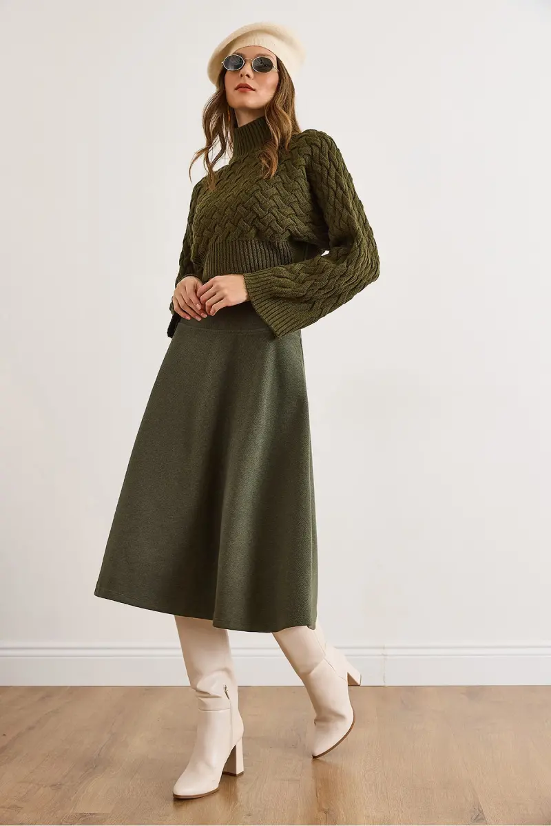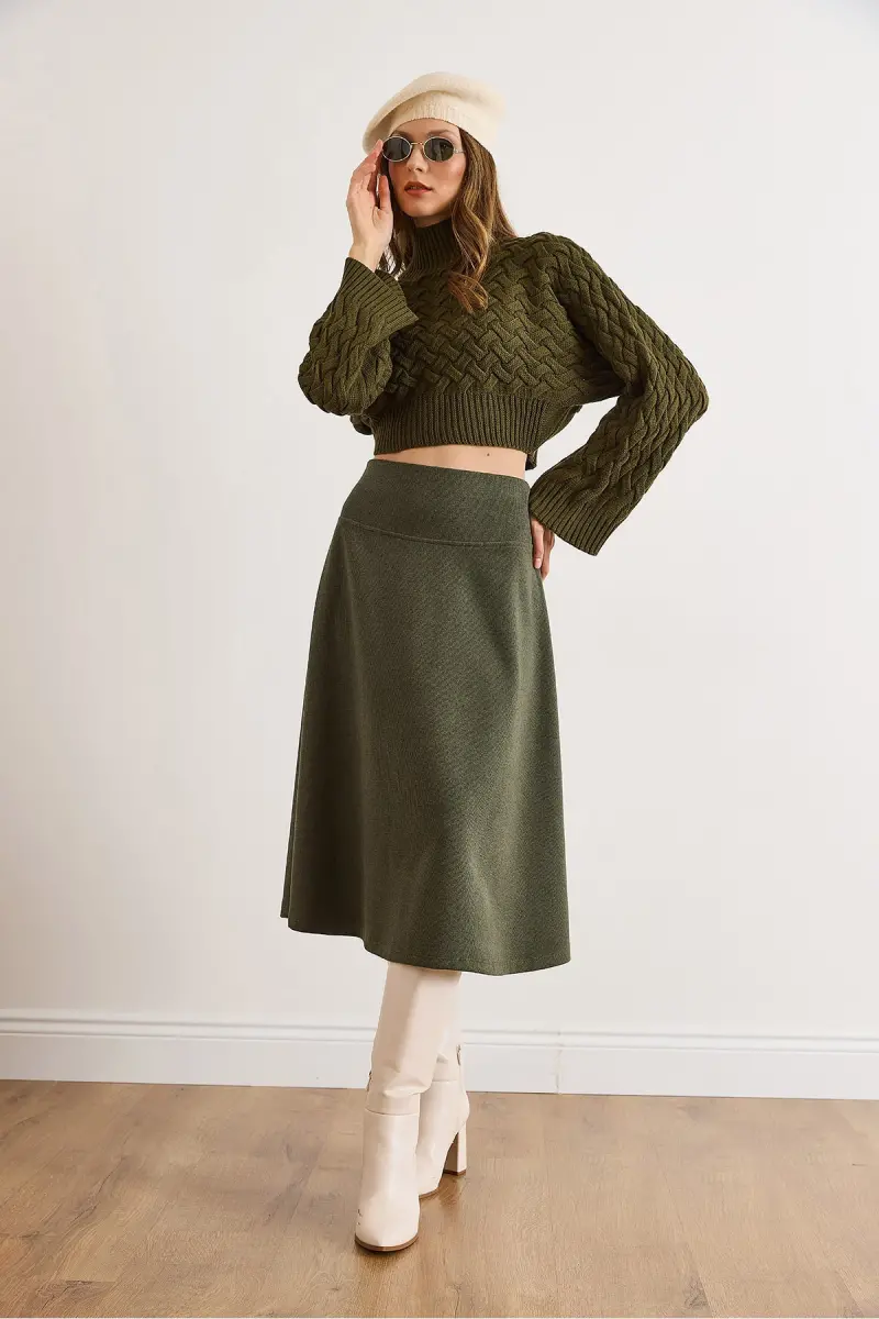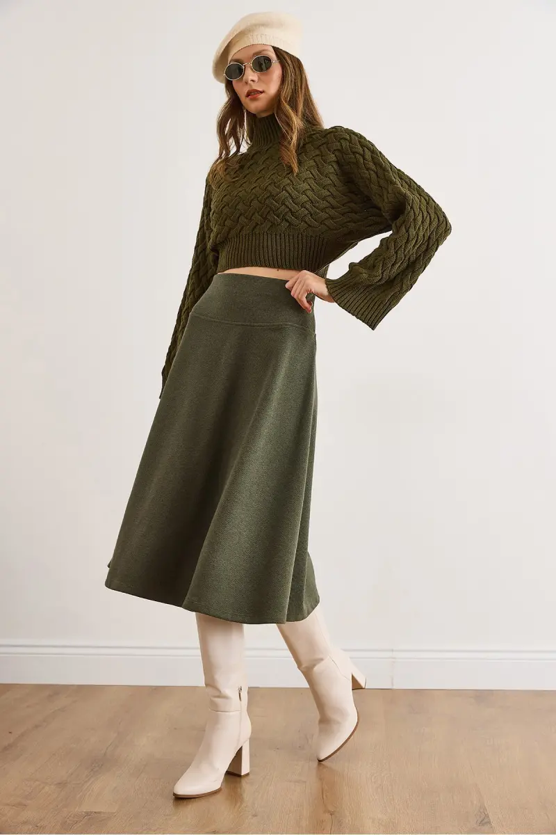 Kadın Haki Beli Bantlı Selanik Çan Etek ETK-19000297-Haki