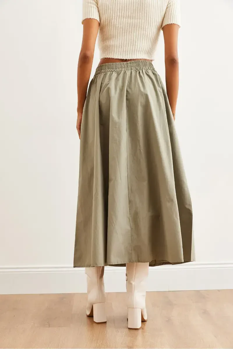 Kadın Haki Beli Lastikli Paraşüt Çan Etek ETK-1900 ile tarzınıza özgün bir dokunuş katın. Bu şık ve rahat etek, hem günlük kullanım hem de özel günler için ideal bir seçimdir. Hafif ve dökümlü yapısıyla hareket özgürlüğü sunarken, çan kesimi feminen bir siluet yaratır. Bel kısmındaki lastik detayı, eteğin vücuda mükemmel şekilde oturmasını sağlar ve gün boyu konforlu bir kullanım deneyimi sunar. Haki rengi, farklı kombinler yapmanıza olanak tanırken, paraşüt kumaşın modern dokusu ise dikkat çekici bir görünüm sağlar. Etek, yüksek kaliteli %100 polyester malzemeden üretilmiştir, bu sayede uzun ömürlü ve dayanıklıdır. Trendyol güvencesiyle sunulan bu ürün, şıklığı ve rahatlığı bir arada arayan kadınlar için vazgeçilmez bir parçadır. İster spor bir tişört ve sneaker'larla kombinleyin, ister şık bir bluz ve topuklu ayakkabılarla tamamlayın, her durumda stilinizi yansıtmanızı sağlar. Gardırobunuzun en sevilen parçalarından biri olacak bu etek, modern ve özgün tarzınızı ön plana çıkaracaktır. Ürünün stüdyo çekimlerinde kullanılan ışık farklılıklarından dolayı renklerde ufak değişiklikler olabileceğini lütfen unutmayın. Ürününüzü uzun süre ilk günkü gibi korumak için etiket üzerindeki yıkama talimatlarına uymanız önemlidir. Kadın Haki Beli Lastikli Paraşüt Çan Etek ETK-1900 ile her ortamda şıklığınızı konuşturun.