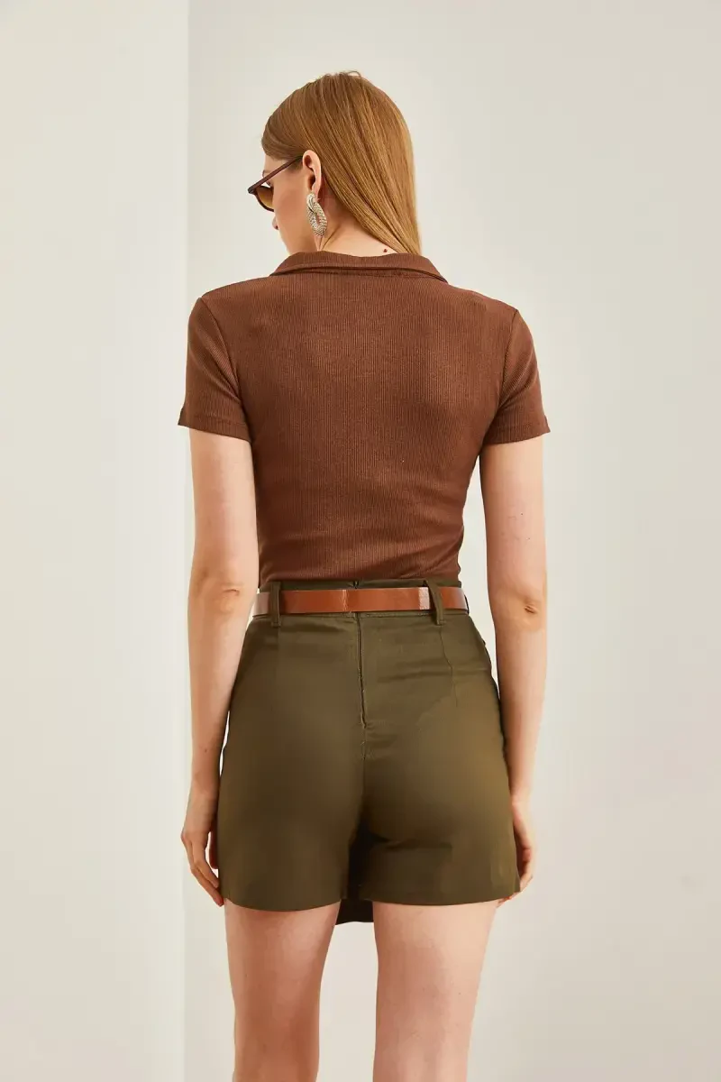 Meet the Women's Khaki Belted Flap Detail Cotton Gabardine Shorts that combine elegance and comfort! These shorts are a perfect choice for both everyday use and special moments. This piece, which will be indispensable in your wardrobe, stands out with its modern design and quality fabric.Product DescriptionWomen's Khaki Belted Flap Detail Cotton Gabardine Shorts have a special design that will appeal to stylish women. While the khaki color offers naturalness and elegance together, the belt detail adds a different touch to the shorts. Flap details provide both visual richness and usability. Thanks to the cotton gabardine fabric, you will have a comfortable and comfortable wearing experience all day long. These shorts allow you to stay cool in hot weather without sacrificing your stylish look. You can create different styles by combining it with either a sporty t-shirt or a stylish blouse. Thanks to its high-quality material, it is long-lasting and does not wear out easily. These shorts, which can be worn in all seasons, will be one of the most loved pieces in your wardrobe. Thanks to its belted design, it makes your waist look slimmer and highlights your body lines. Flap details add mobility to the shorts while allowing you to safely carry your small items. Cotton gabardine fabric prevents sweating with its breathable structure and keeps you fresh all day long. These shorts are an ideal choice for women who want to combine both elegance and comfort. You can easily prefer it both in your daily activities and at special invitations. These special design shorts, which will reflect your elegance and style, are candidates to be an indispensable part of your wardrobe. Discover the Women's Khaki Belted Flap Detail Cotton Gabardine Shorts now to reflect your own style and attract attention in any environment. These shorts are not just a piece of clothing, but also an expression of a lifestyle. Don't miss this unique piece to experience elegance and comfort together!Product Features* Khaki color* Belt detail* Flap details* Cotton gabardine fabric* Comfortable fit* High-quality material* Long-lasting use* Stylish and modern design* Easy to combine* Breathable fabricAdditional InformationIt is recommended to follow the washing instructions for the product to have a long life. Wash at low temperature and with similar colors. Do not use bleach. Iron inside out to protect the fabric structure of the product. Body size on the model: S. Model height: 1.75 cm.