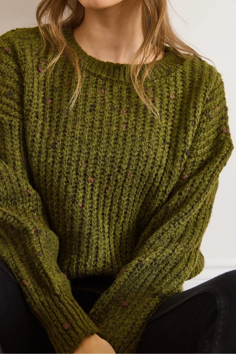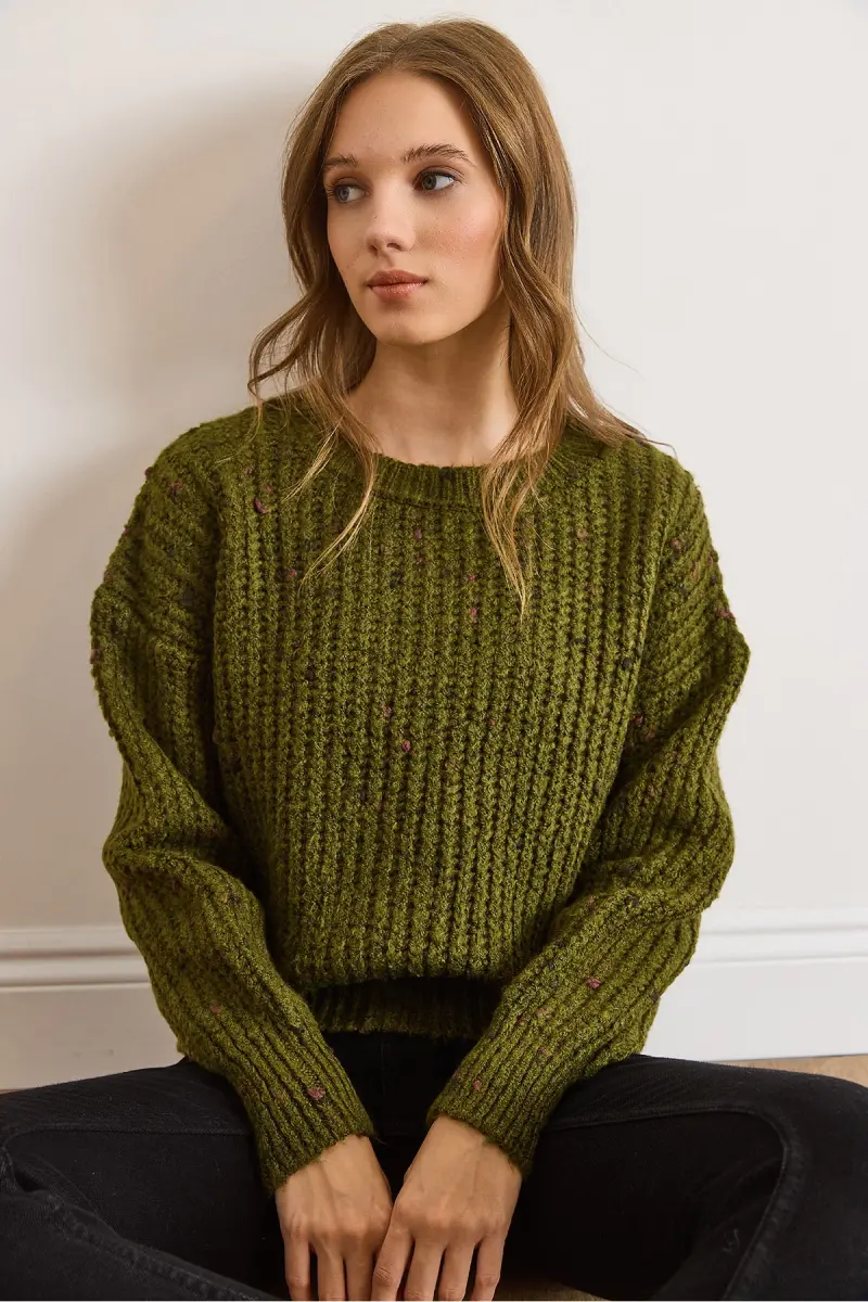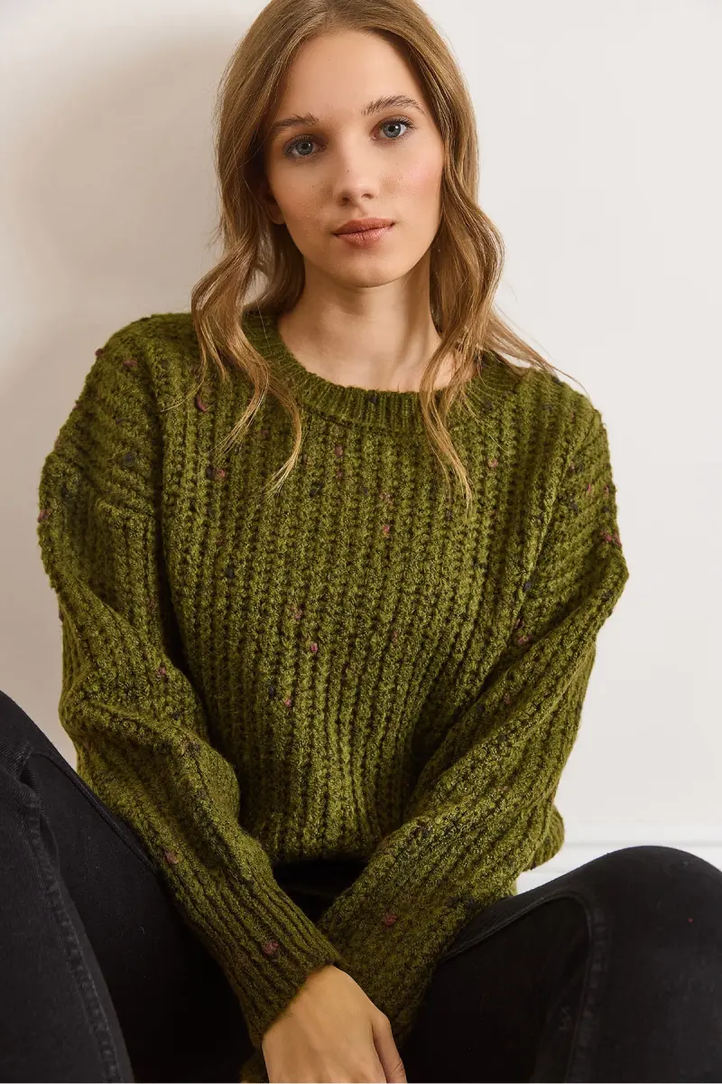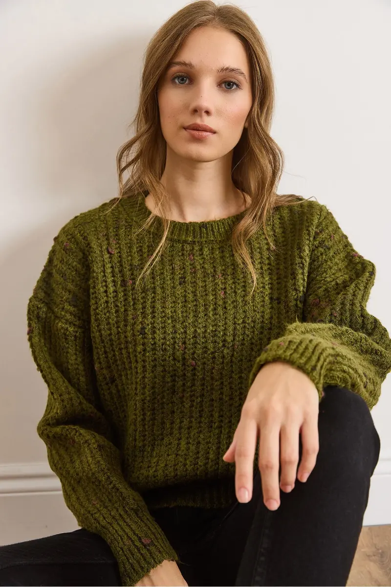 Kadın Haki Renk Detaylı Yumuşak Detaylı Oversize Triko Kazak KZK-19000862-Haki