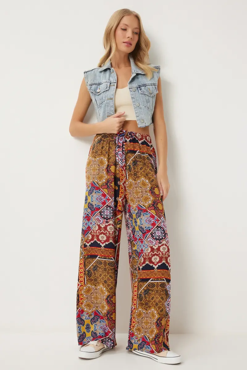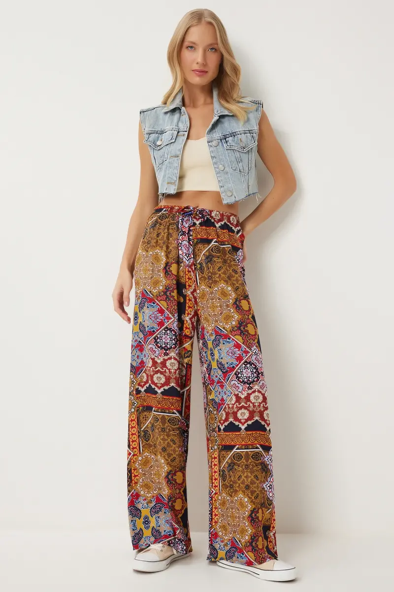 Bu ürün Trendyol tarafından gönderilecektir.Kampanya fiyatından satılmak üzere 5 adetten az stok bulunmaktadır.Bir ürün, birden fazla satıcı tarafından satılabilir. Birden fazla satıcı tarafından satışa sunulan ürünlerin satıcıları ürün için belirledikleri fiyata, satıcı puanlarına, teslimat statülerine, ürünlerdeki promosyonlara, kargonun bedava olup olmamasına ve ürünlerin hızlı teslimat ile teslim edilip edilememesine, ürünlerin stok ve kategorileri bilgilerine göre sıralanmaktadır.Bu üründen en fazla 10 adet sipariş verilebilir. 10 adedin üzerindeki siparişleri Trendyol iptal etme hakkını saklı tutar. Belirlenen bu limit kurumsal siparişlerde geçerli olmayıp, kurumsal siparişler için farklı limitler belirlenebilmektedir.15 gün içinde ücretsiz iade. Detaylı bilgi için [page="return_conditions"]tıklayın .Normal bel kesimi ile rahat bir kullanım sunan palazzo pantolon, gün boyu konfor sağlarDijital baskı teknolojisi ile üretilen hardal kiremit deseni, şık ve modern bir görünüm kazandırırViskon materyalinin yumuşak dokusu ve orta kalınlığı, mevsim geçişlerinde ideal bir tercih oluştururHer yaş grubuna hitap eden tasarımıyla geniş bir kullanıcı yelpazesine sahiptirBoru paça kesimi sayesinde hem günlük hem de özel günlerde şıklığınızı tamamlarHavuç/şalvar silueti ile trend bir görünüm sunarken, uzun boyu bacakları olduğundan daha uzun gösterirKolay bakım imkanı sunan yıkama talimatları sayesinde uzun süreli kullanım için idealdir