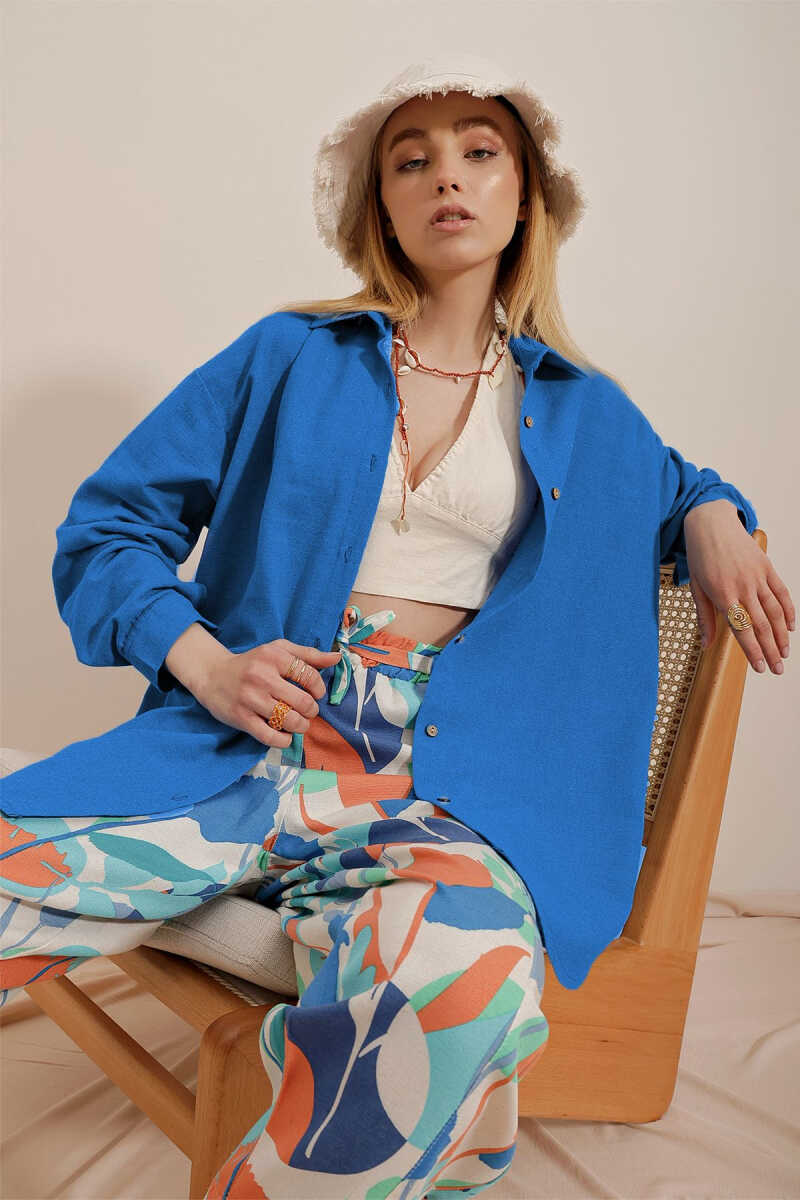 Ayollar uchun ko'k rangli katta hajmdagi zig'ir ko'ylak - Qulay va zamonaviy yozgi uslub