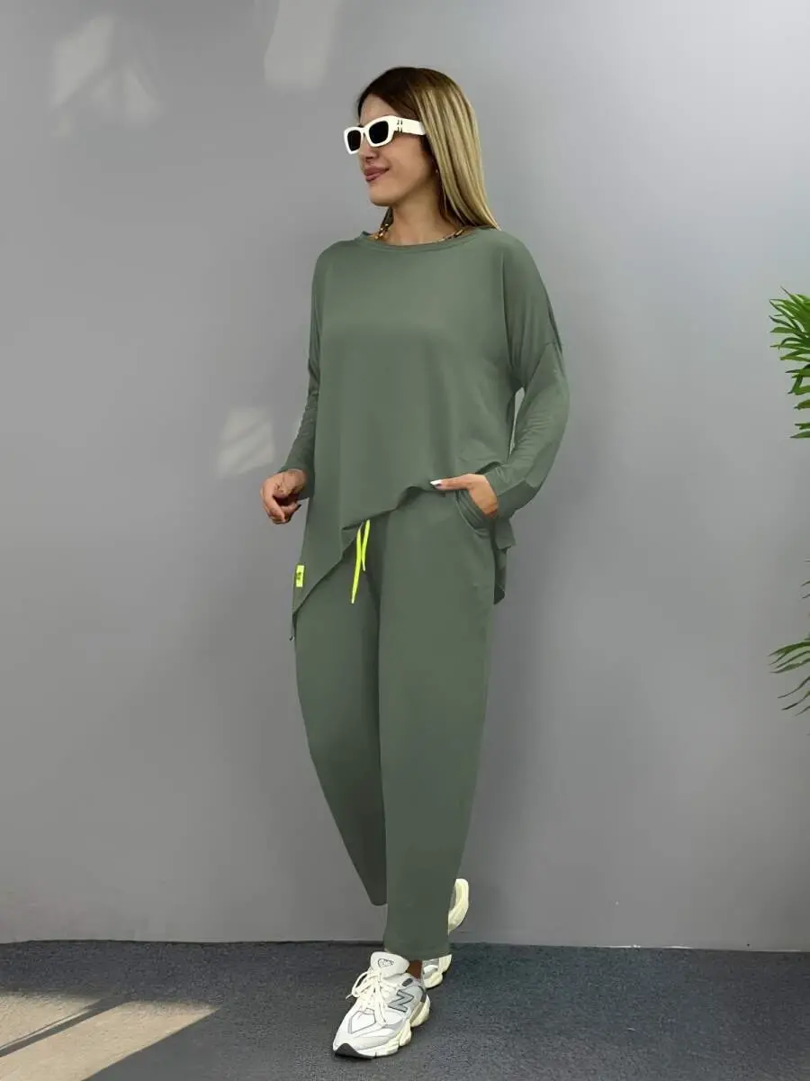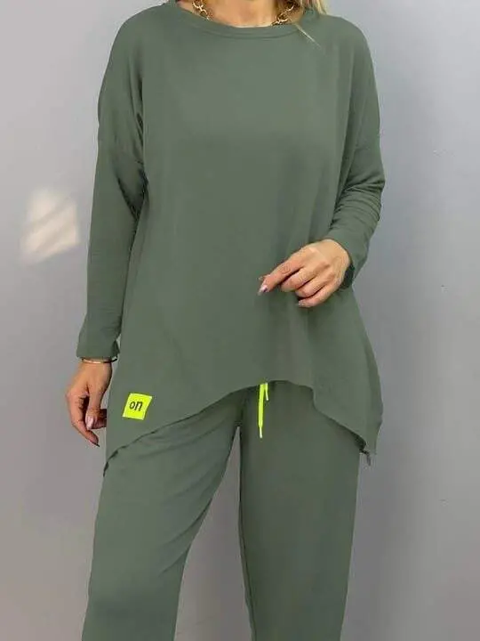 Kadın Iki Iplik Viskon Pamuk Kumaş Arma Detaylı Ikili Takım