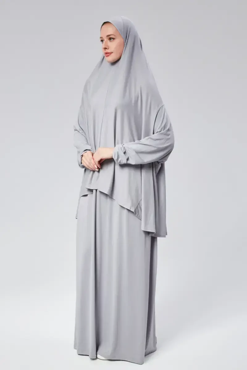 SonBaharModa'nın özenle tasarladığı Kadın İki Parça Namaz Elbisesi, başörtüsüyle birlikte gelerek tesettür giyimde pratik ve şık bir alternatif sunuyor. Organik pamuklu kumaşı ve lastikli kol detayları sayesinde konforlu bir kullanım deneyimi yaşatırken, kaymaz kol özelliğiyle de ibadet esnasında rahatlık sağlar. Bu penye tesettür elbisesi, düz dökümlü kesimi ve rahat kumaşıyla vücuda tam oturur. Boynunuzu da örtecek şekilde tasarlanmış olan başörtüsü, bone ihtiyacını ortadan kaldırarak tam bir tesettür imkanı sunar. Başörtüsünü dilediğiniz zaman çıkararak farklı ortamlarda farklı tesettür stilleri yaratabilirsiniz. Pratik hijab görünümü sayesinde önden ve arkadan yarım pelerin şeklinde duran başörtüsü, etekle birlikte şık bir kombin oluşturur. Kadın modasının vazgeçilmez parçalarından biri olan bu namaz elbisesi, likralı yapısıyla vücuda uyum sağlayarak hareket özgürlüğü sunar. Tamamen organik kumaşlardan üretilmiş olup, kesinlikle polyester içermez. Esnek dokusu sayesinde kırışmaya karşı dayanıklıdır ve hava geçirgenliği sağlar. Hafif kumaşı, uzun süreli ve sık kullanım için idealdir. Kaliteli ve rahat viskon kumaşı iç göstermez ve kayma yapmaz. Lastikli kolu sayesinde kayma problemi yaşatmaz. Doğal liflerden üretilmiş, yumuşak dokusu ile kullanışlı ve rahattır. Yüksek oranda nem tutabilme kapasitesi vardır. Ağırlık yapmayan kumaş özelliği ile sık ve uzun süreli kullanıma uygundur. Fermuarsız tasarımı sayesinde pratik ve kolay bir şekilde giyilebilir. Hac ve umre ziyaretleri için de uygun olan bu namaz elbisesi, dört mevsim boyunca rahatlıkla kullanılabilir. Terletmez ve ütü gerektirmez. Şıklığı ve rahatlığı bir arada sunan bu ürün, tesettür giyimde kurtarıcı bir parçadır. Yalnızca orijinalliği korunmuş ve hijyen standartlarına uygun ürünlerde iade mümkündür. Ürün çekimleri sırasında ışık gibi faktörlerden dolayı küçük renk farklılıkları olabilir. Bu şık ve kullanışlı namaz elbisesi, gardırobunuzun vazgeçilmez parçalarından biri olacak.