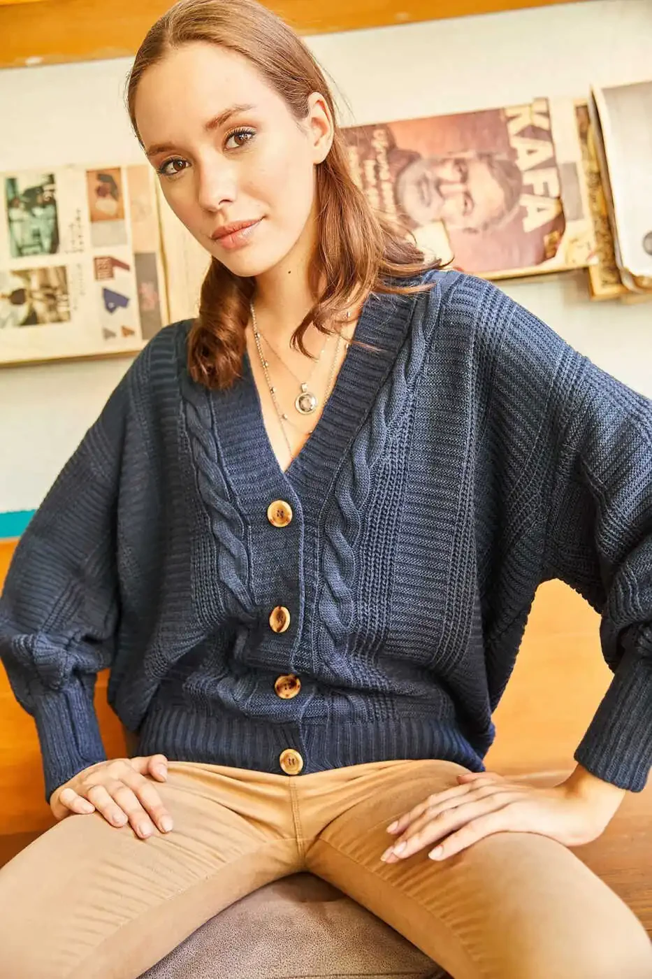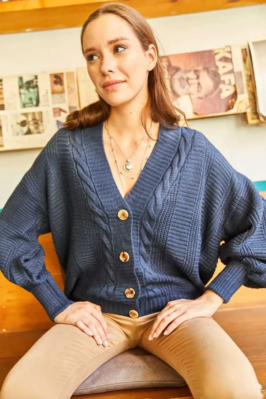 **Ayollar uchun Indigo Qalin Soch O'rgili Triko Jilet HRK-19000082**