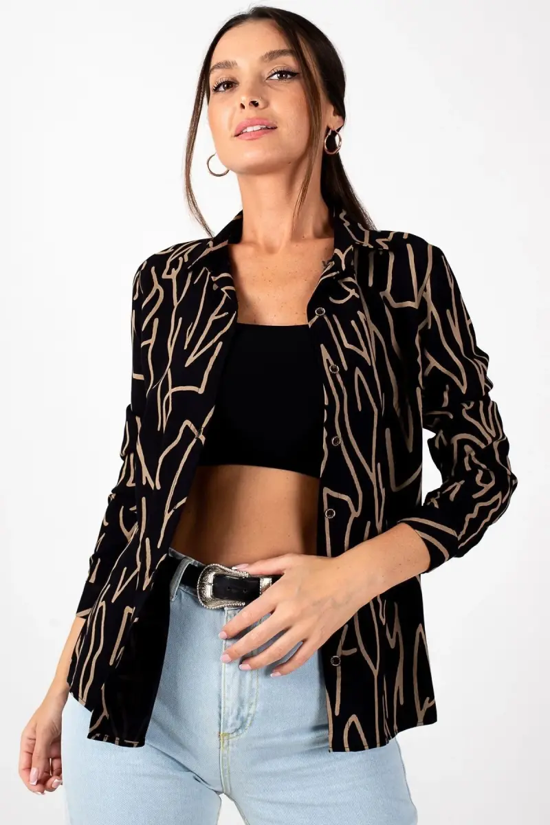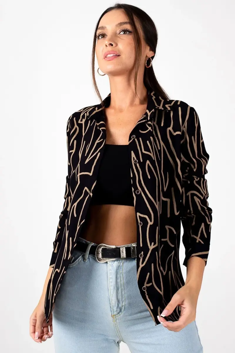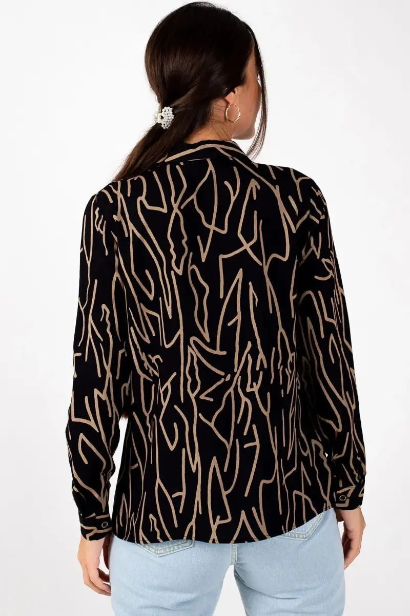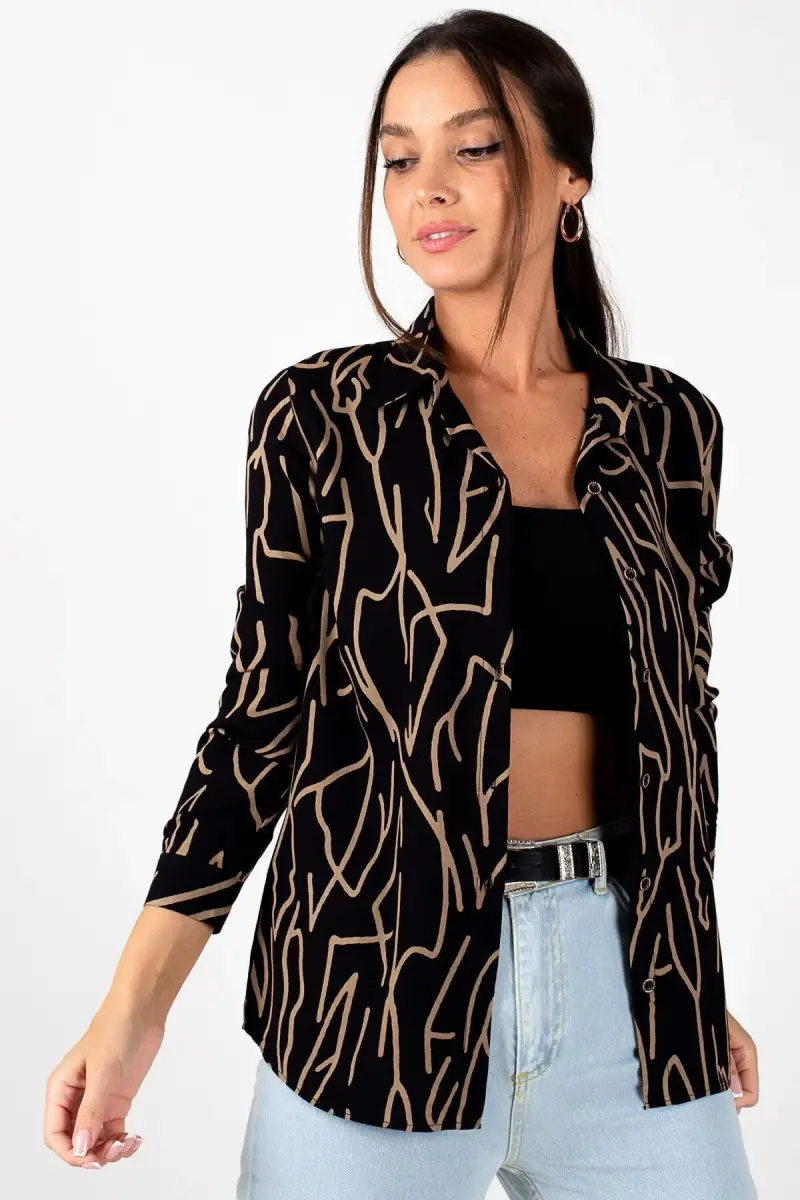 Kadın Kahve ÇİZGİ DESEN UZUN KOL GÖMLEK ARM-20Y001002-Kahve