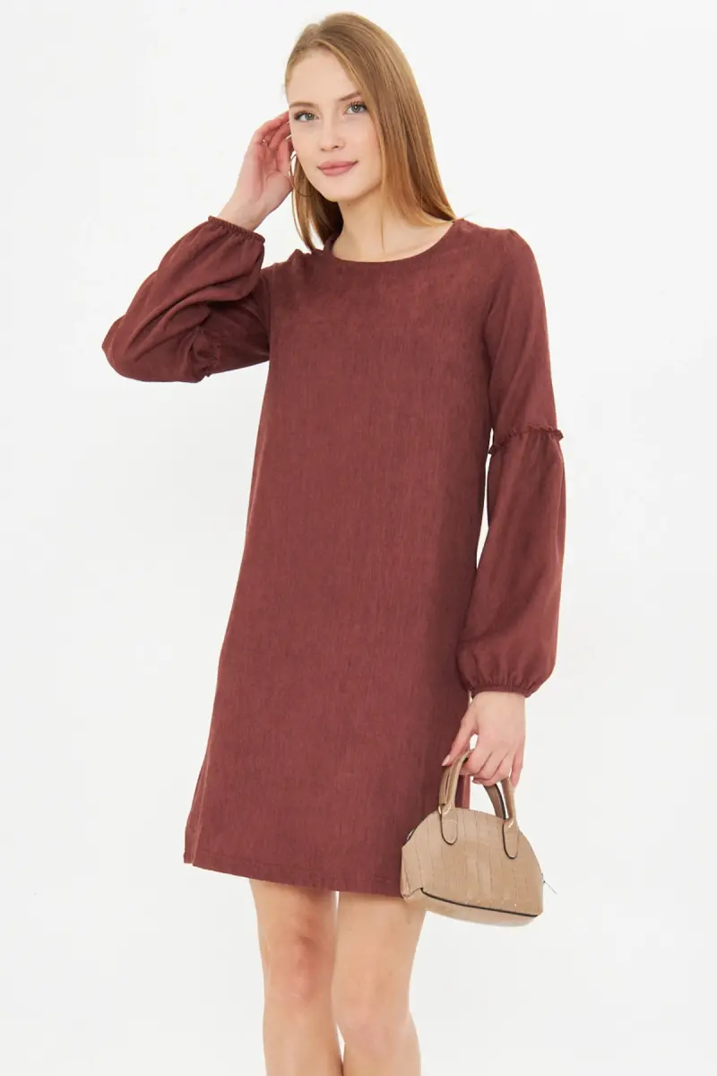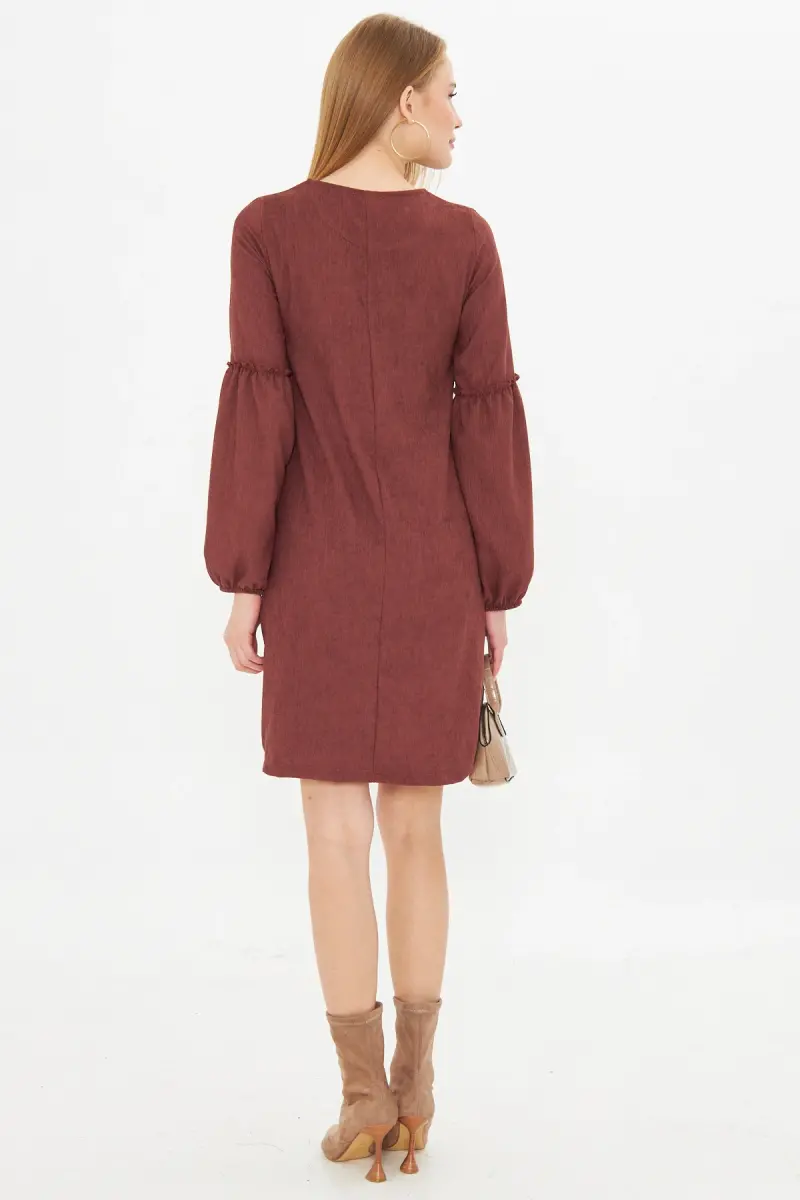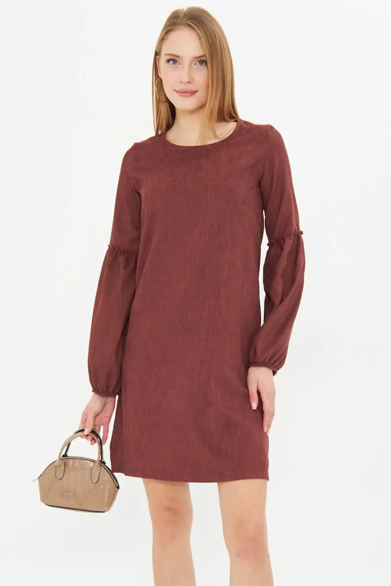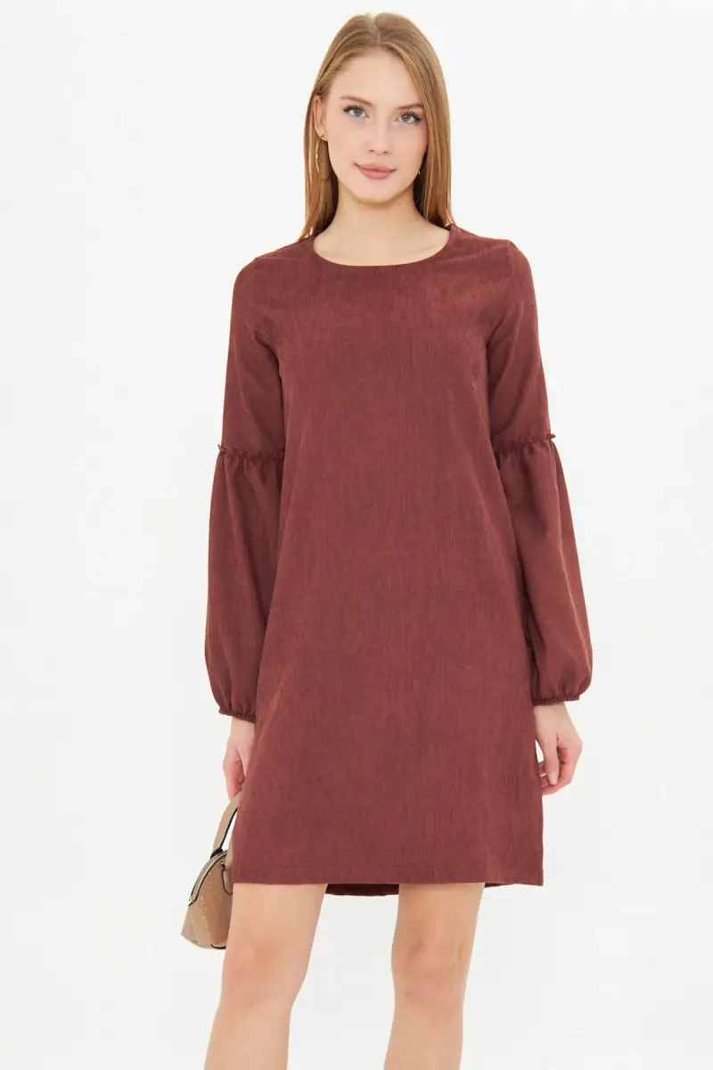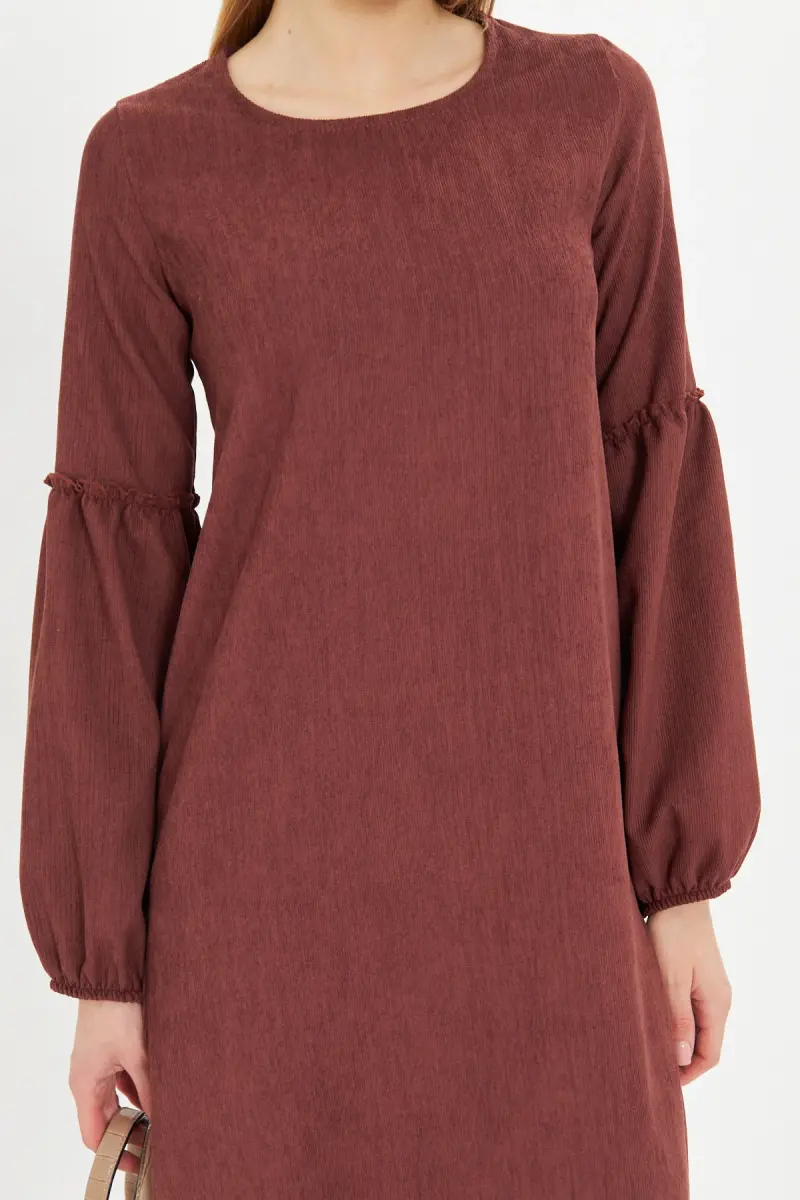 Kadın Kahve Kolu Balonlu Kadife Elbise ARM-20K001107-KAHVE