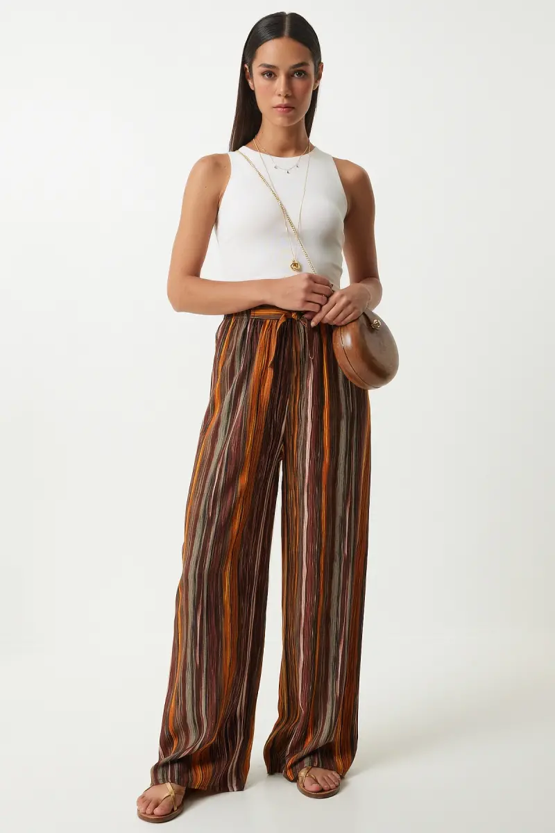 Bu ürün Trendyol tarafından gönderilecektir.Kampanya fiyatından satılmak üzere 5 adetten az stok bulunmaktadır.Bir ürün, birden fazla satıcı tarafından satılabilir. Birden fazla satıcı tarafından satışa sunulan ürünlerin satıcıları ürün için belirledikleri fiyata, satıcı puanlarına, teslimat statülerine, ürünlerdeki promosyonlara, kargonun bedava olup olmamasına ve ürünlerin hızlı teslimat ile teslim edilip edilememesine, ürünlerin stok ve kategorileri bilgilerine göre sıralanmaktadır.Bu üründen en fazla 10 adet sipariş verilebilir. 10 adedin üzerindeki siparişleri Trendyol iptal etme hakkını saklı tutar. Belirlenen bu limit kurumsal siparişlerde geçerli olmayıp, kurumsal siparişler için farklı limitler belirlenebilmektedir.15 gün içinde ücretsiz iade. Detaylı bilgi için [page="return_conditions"]tıklayın .Boru paça tasarımı ile modern ve şık bir görünüm sunarPalazzo kalıbı sayesinde rahat hareket etme özgürlüğü sağlarYıkama talimatlarına uygun şekilde kolayca temizlenebilirYüksek kaliteli viskon materyali, yumuşak dokusuyla konforlu bir kullanım sunarHer yaş grubuna hitap eden tasarımıyla geniş bir kullanıcı yelpazesine sahiptirDijital baskı tekniği ile canlı ve kalıcı desenler elde edilirŞık ortamlarda dikkat çekici bir stil oluştururUzun boy kesimi ile bacakları olduğundan daha uzun gösterir%100 viskoz içeriği sayesinde nefes alabilir yapıda bir kumaş deneyimi yaşatırHavuç/şalvar silueti ile trend bir görünüm kazandırırBasic koleksiyonun sadeliğiyle her gardıropta temel parça olarak yerini alırNormal bel yüksekliği, gün boyu rahatlık sağlarDokuma kumaş tipi dayanıklılığı arttırarak uzun süreli kullanım imkanı tanırDesenli yapısıyla göz alıcı detay