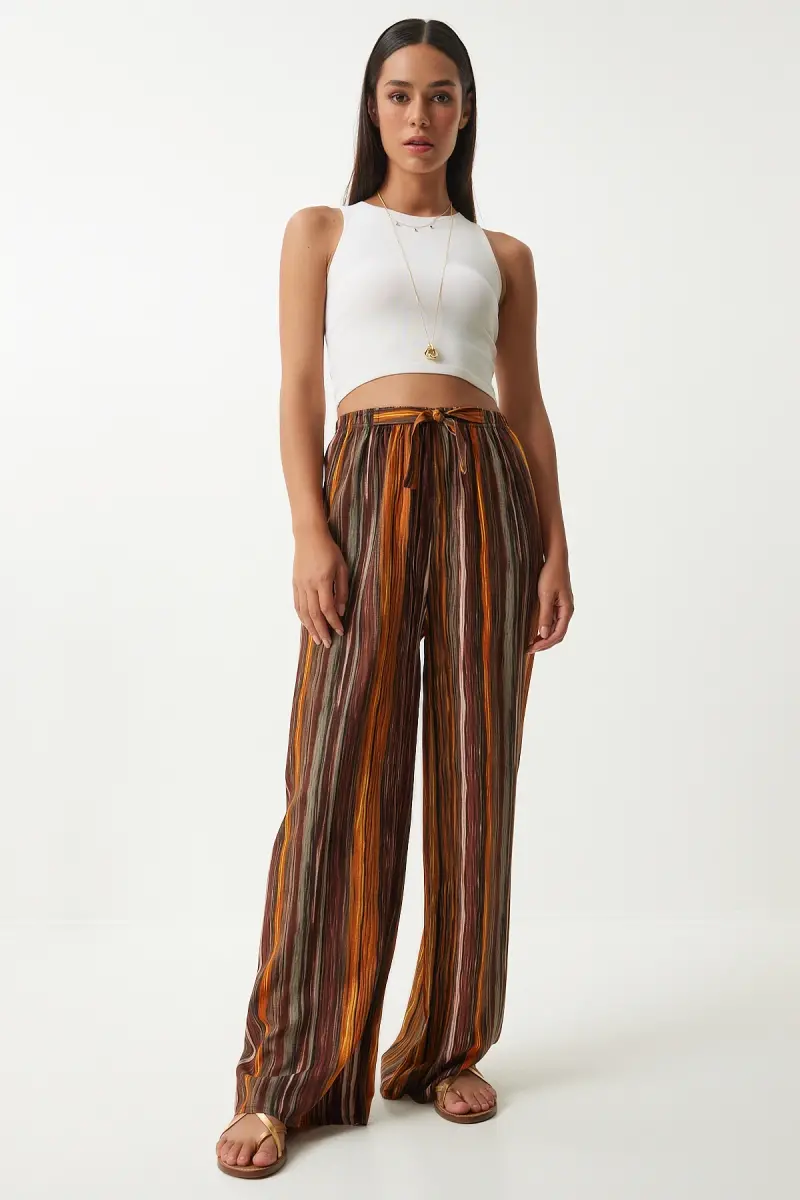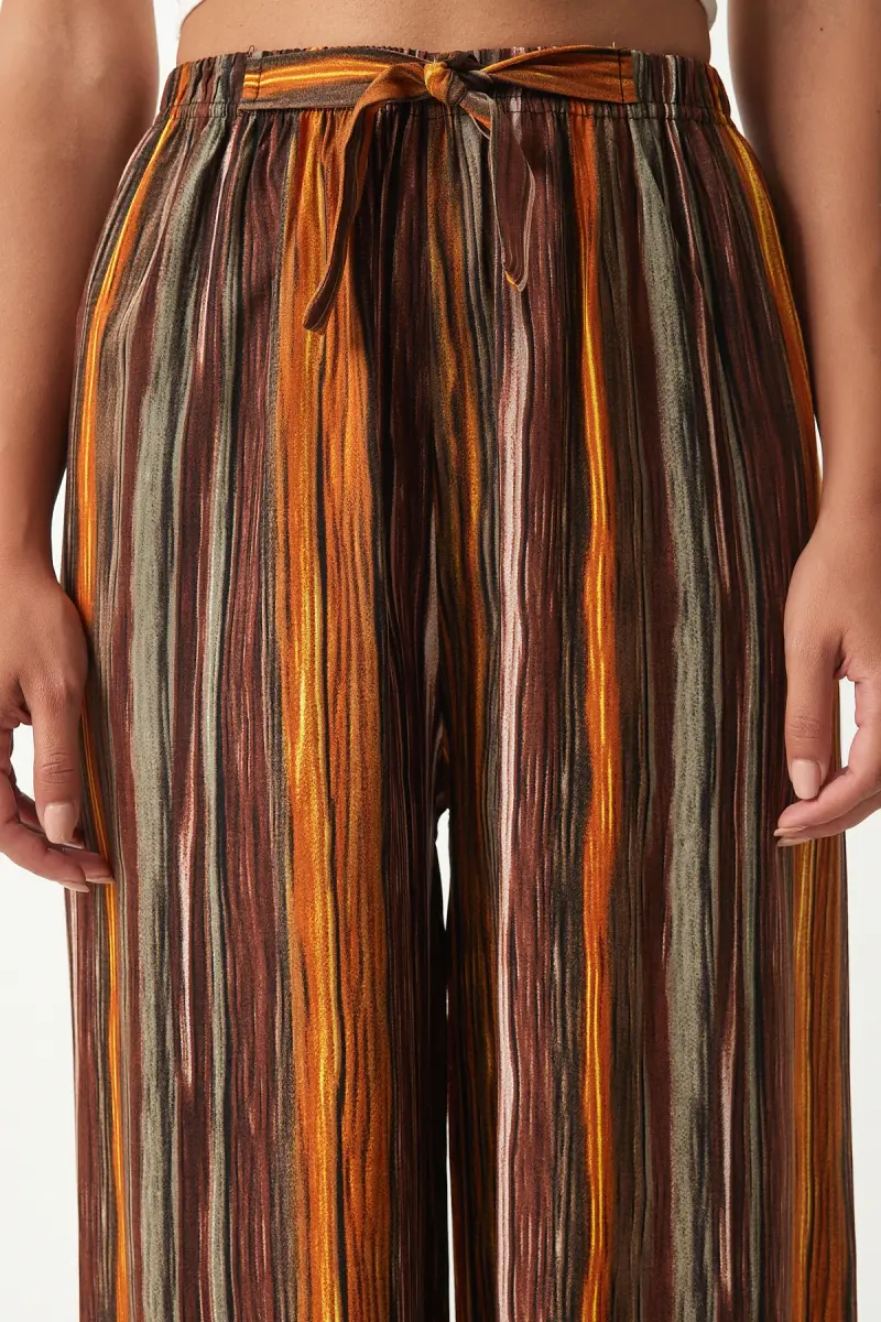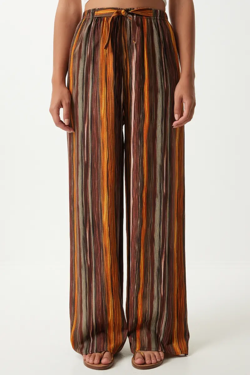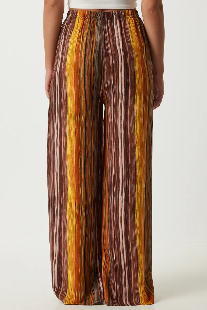 Kadın Kahverengi Desenli Dökümlü Viskon Palazzo Pantolon EN00606-Kahverengi