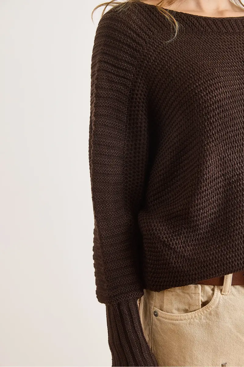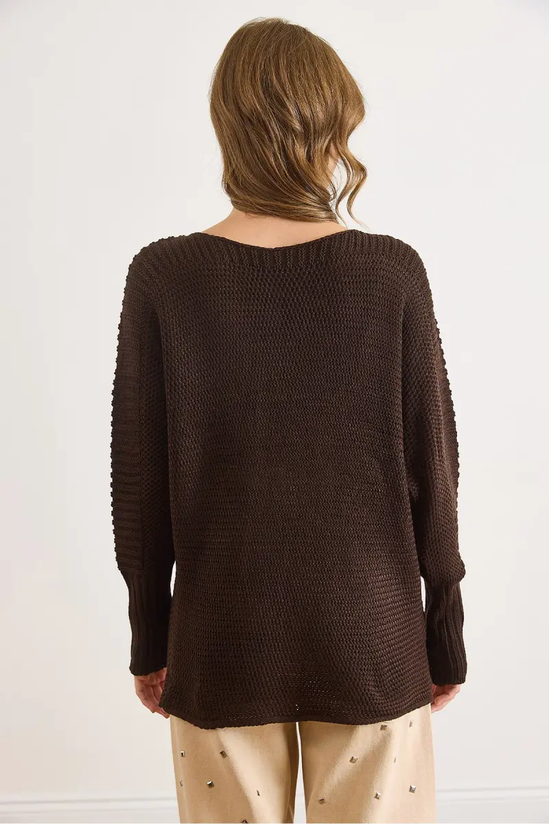 Kadın Kahverengi Kol Detaylı Petek Örgü Kazak KZK-19000399-Kahverengi