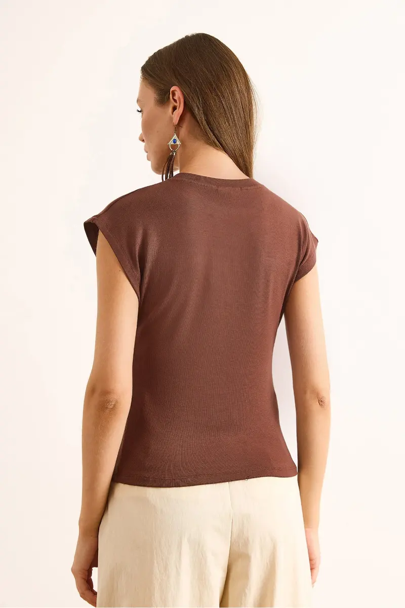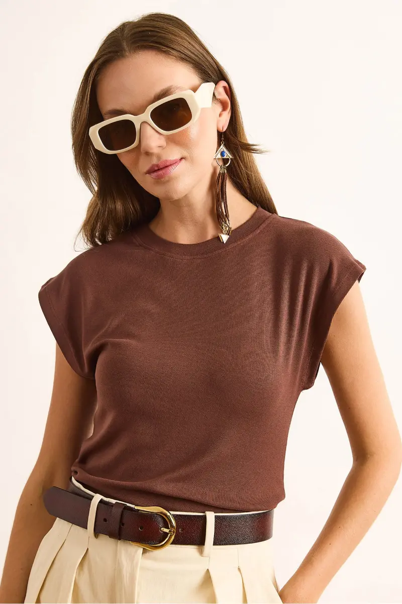 Kadın Kahverengi Yarasa Yumuşak Dokulu Esnek Bluz BLZ-19002877-Kahverengi