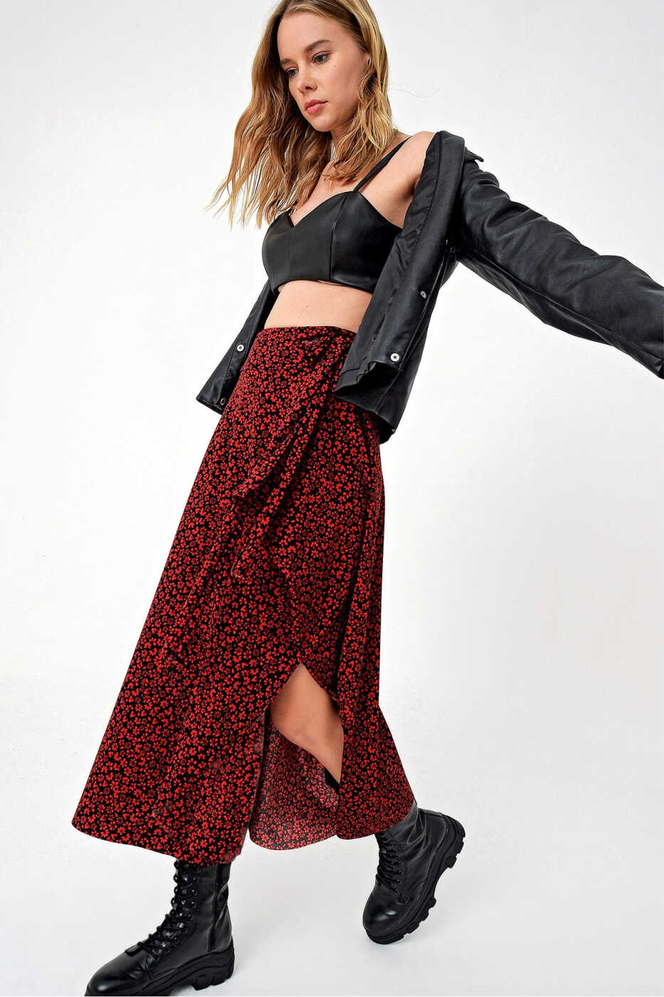 Kadın Kırmızı Asimetrik Kesim Beli Bağlamalı Etek ALC-X5001, gardırobunuzun vazgeçilmez parçalarından biri olacak. Şimdi sipariş verin ve stilinizi en üst düzeye taşıyın!