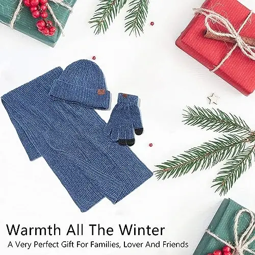 Paket içeriği: 1 örgü bere şapka, 1 atkı ve 1 çift dokunmatik ekran eldiveni; Soğuk kışta sizi sıcak tutar.Malzeme: Bu kışlık set, birinci sınıf yumuşak eğrilmiş akrilik elyaftan yapılmıştır, iç kısmı yapay yün astarlıdır, çok rahat ve yumuşaktır.Boyut: Şapka Çevresi: 22-23.2''(55-59cm), Yükseklik: 10.2''(26cm); Daire Atkı Çevresi: 19.7-21.3''(50-54cm), Genişlik: 8.7''(22cm); Eldiven Uzunluğu: 8.7''(22cm); İyi esneklik ve esneyebilir, çoğu kadın için uygundur.Dokunmatik Ekran Eldivenleri: İşaret parmağı ve başparmağında hassas iletken malzeme sayesinde, akıllı telefonunuzun, tabletinizin veya diğer dokunmatik ekranlı cihazlarınızın ekranına dokunmak için eldivenleri giyebilirsiniz.Uygulama: Kadınların kışlık kıyafetleriyle kolayca eşleştirilebilir. Palto veya kazaklara şık bir görünümle havalı havalarda giyin. Bu kışlık set, iç ve dış mekan aktiviteleri dahil olmak üzere günlük giyim için mükemmeldir. Örneğin: uyumak, köpeğinizi gezdirmek, bisiklete binmek, kayak yapmak, snowboard yapmak, koşmak, kamp yapmak, seyahat etmek, balık tutmak, yürüyüş yapmak, motosiklete binmek vb.
