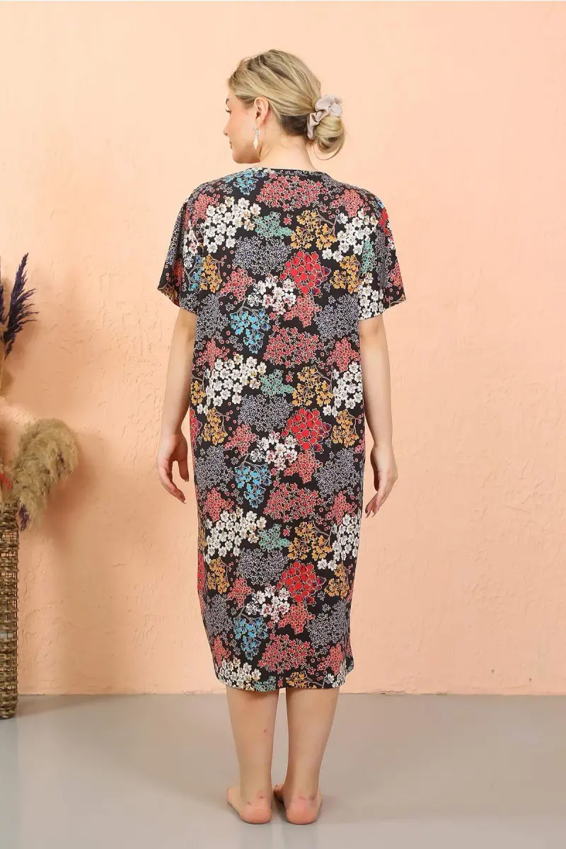 Kadın Kısa Kol Diz Altı Ev Elbisesi - Geceliği 93412