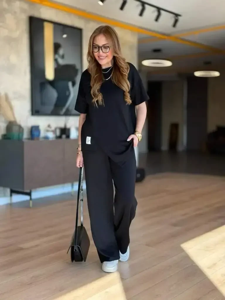 Kadın Kısa Kollu Bisiklet Yaka Asimetrik Viskon İki İplik Bluz ve Pantolon İkili Takım ile şıklığı ve rahatlığı bir arada yaşayın. Bu özel tasarım takım, günlük kullanımınızdan özel anlarınıza kadar her ortamda size eşlik edecek. Asimetrik kesimli bluzu ve rahat kesim pantolonu ile hem modern hem de konforlu bir görünüm sunar. Viskon kumaşın yumuşak dokusu teninize nazikçe dokunurken, iki iplik yapısı sayesinde dayanıklılık ve uzun ömürlü kullanım sağlar. Bisiklet yaka detayı, bluzun zarifliğini ön plana çıkarırken, kısa kollu tasarımı sıcak havalarda serin kalmanızı sağlar. Pantolonlu takım olması, kombin yapma derdinden sizi kurtarır ve şık bir bütünlük oluşturur. İster spor ayakkabılarla günlük bir kombin yapın, ister topuklu ayakkabılarla daha şık bir görünüm elde edin. Bu takım, gardırobunuzun vazgeçilmez parçası olacak. Modelin üzerindeki ürün M/38 bedendir ve modelin ölçüleri Boy: 165, Kg: 55, Göğüs: 90, Bel: 72, Kalça: 100 şeklindedir. Bu bilgiler, ürünün üzerinizde nasıl duracağına dair size fikir verecektir. Kumaşın kalitesi ve dikiş detaylarındaki özen, takımın uzun süre ilk günkü gibi kalmasını sağlar. Hem şık hem de rahat olmak isteyen kadınlar için ideal bir seçimdir. Gün boyu hareket özgürlüğünüzü kısıtlamayan bu takım, stilinizi yansıtmanın en kolay yoludur. Asimetrik kesim bluz, sıradanlıktan uzaklaşmanızı sağlarken, viskon kumaşın akıcılığı üzerinizde hoş bir duruş sergiler. Pantolonun rahat kesimi ise gün boyu konfor sunar. Bu takım ile hem şık görünecek hem de kendinizi iyi hissedeceksiniz. Gardırobunuzun kurtarıcı parçası olacak bu takımı kaçırmayın. İki iplik viskon kumaşın sunduğu konfor ve şıklık, bu takımda bir araya geliyor. Asimetrik kesim bluz, modern bir dokunuş katarken, pantolonun rahat kesimi gün boyu hareket özgürlüğü sunar. Bisiklet yaka detayı, bluzun zarifliğini ön plana çıkarırken, kısa kollu tasarımı sıcak havalarda serin kalmanızı sağlar. Bu takım, hem günlük kullanım hem de özel günler için ideal bir seçenektir. Modelin üzerindeki ürün M/38 bedendir ve modelin ölçüleri Boy: 165, Kg: 55, Göğüs: 90, Bel: 72, Kalça: 100 şeklindedir. Bu bilgiler, ürünün üzerinizde nasıl duracağına dair size fikir verecektir. Kumaşın kalitesi ve dikiş detaylarındaki özen, takımın uzun süre ilk günkü gibi kalmasını sağlar. Hem şık hem de rahat olmak isteyen kadınlar için ideal bir seçimdir. Gün boyu hareket özgürlüğünüzü kısıtlamayan bu takım, stilinizi yansıtmanın en kolay yoludur.