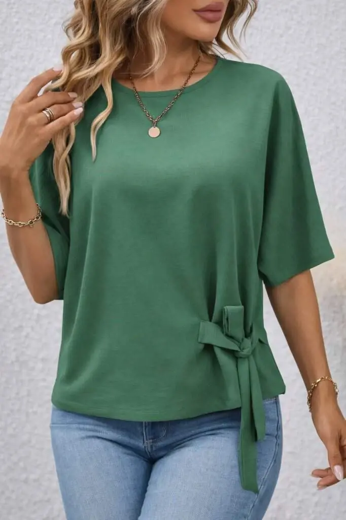 Kadın Kısa Kollu Bisiklet Yaka Yandan Bağcıklı Aerobin BluzModelin Ölçüleri: Boy: 165, Kg: 55, Göğüs: 90, Bel: 72, Kalça: 100Modelin üzerindeki ürün M/38 bedendirDESEN-DiğerleriKALIP-Klasik