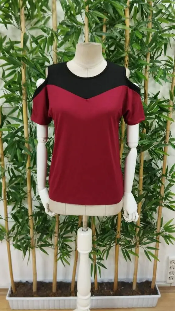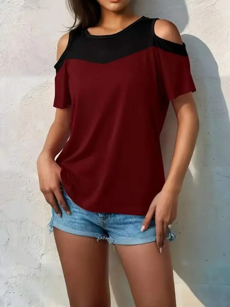 Kadın Kısa Kollu Omuzlardan Açık Detaylı çift Renkli Viskon BluzModelin Ölçüleri: Boy: 165, Kg: 55, Göğüs: 90, Bel: 72, Kalça: 100Modelin üzerindeki ürün M/38 bedendirDESEN-DiğerleriKALIP-Klasik