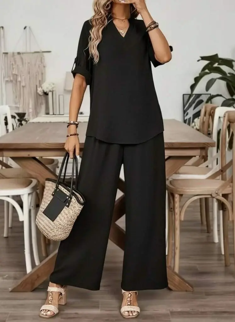 Kadın Kısa Kollu V Yakalı Aerobin Bluz Ve Pantolon Ikili TakımModelin Ölçüleri: Boy: 165, Kg: 55, Göğüs: 90, Bel: 72, Kalça: 100Modelin üzerindeki ürün M/38 bedendirKOL UZUNLUK-Kısa KolTAKIM OZELLIK-Pantolonlu TakımEK OZELLIKLER-Boş/Ek özellik Yok