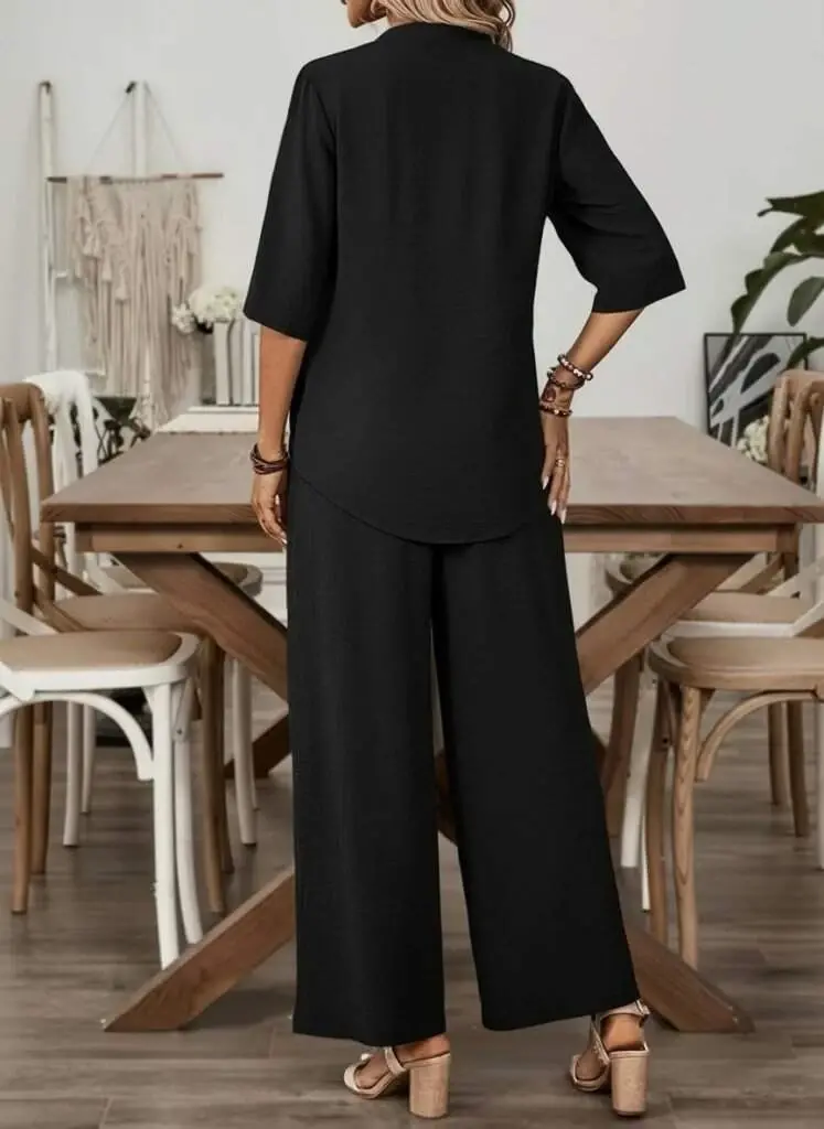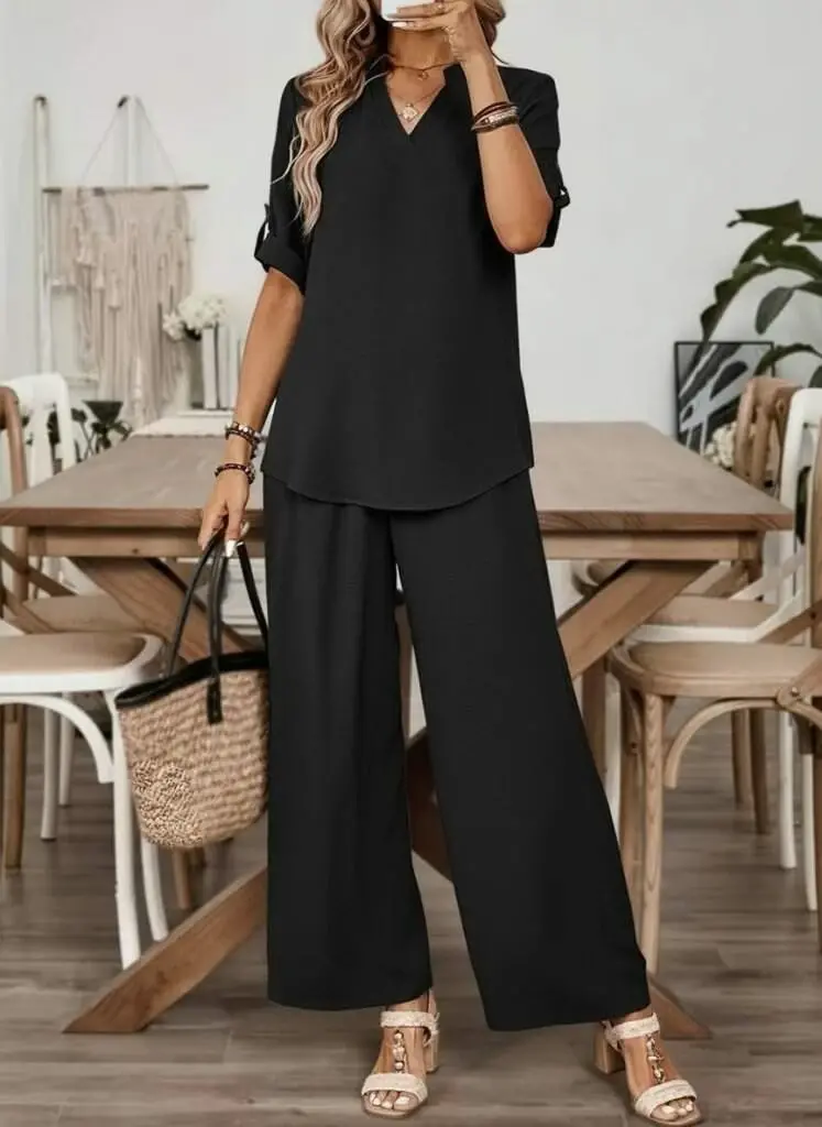 Kadın Kısa Kollu V Yakalı Aerobin Bluz Ve Pantolon Ikili Takım