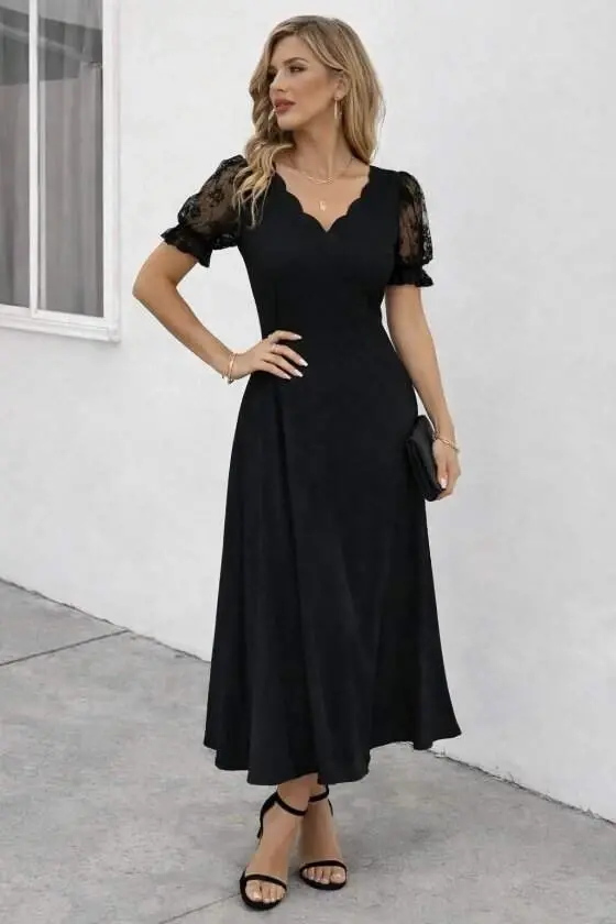 Kadın Kısa Kollu V Yakalı Uzun Janjan Elbise