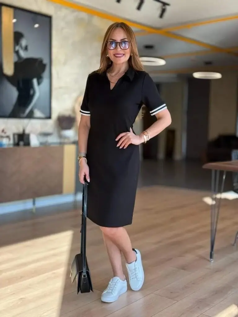 Kadın Kısa Kollu V Yakalı Viskon Iki Iplik Elbise