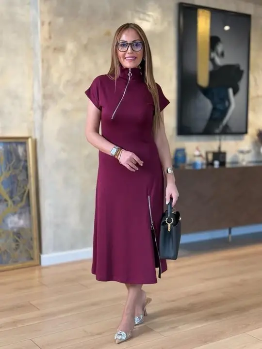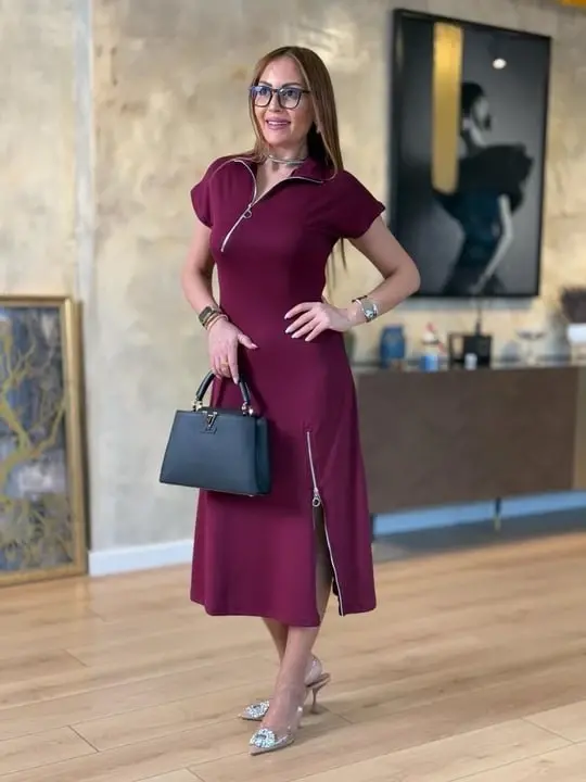 Kadın Kısa Kollu Yakadan Ve Etekten Fermuarlı Midi Viskon Iki Iplik ElbiseModelin Ölçüleri: Boy: 165, Kg: 55, Göğüs: 90, Bel: 72, Kalça: 100Modelin üzerindeki ürün M/38 bedendirTARZ-DiğerleriYAKA-Bisiklet/Yuvarlak YakaDESEN-DiğerleriKOL UZUNLUK-Kısa KolUZUNLUK-DiğerleriEK OZELLIKLER-Boş/Ek özellik YokTARZ-DigerKALIP-Diger