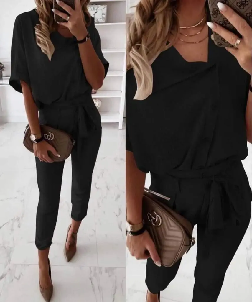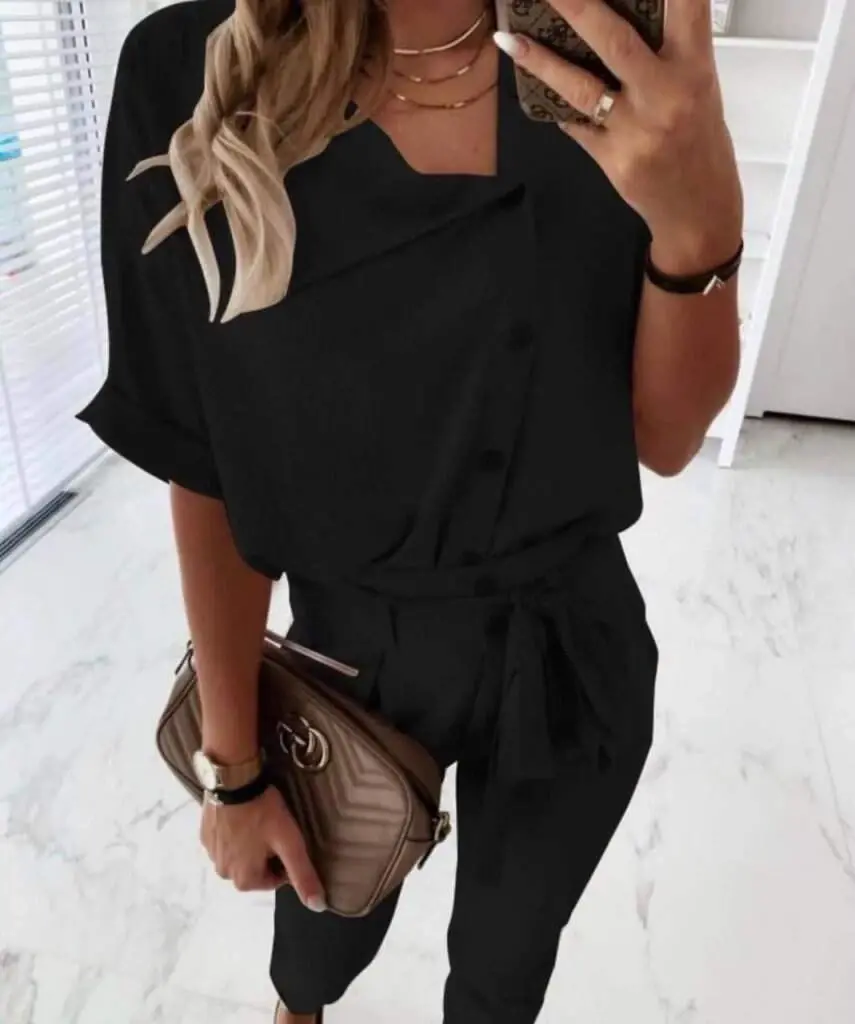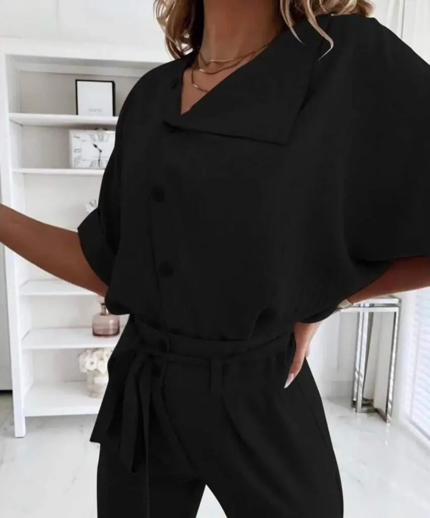 Kadın Kısa Kollu Yakalı önden Düğmeli Bürümcük Bluz Ve Pantolon Ikili Takım