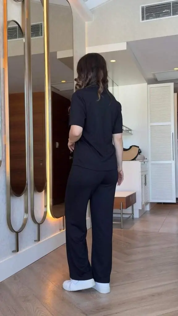 Kadın Kısa Kollu Yakalı Viskon Iki Iplik Bluz Ve Pantolon Ikili Takım