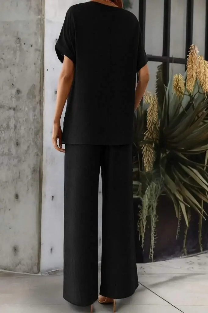 Kadın Kısa Kollu Yakası Açık Aerobin Bluz Ve Pantolon Ikili Takım