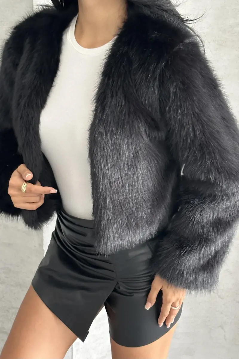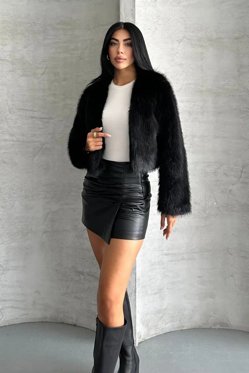 Kadın Kısa Yumuşak Premium Kürk Ceket-Siyahprv
