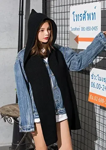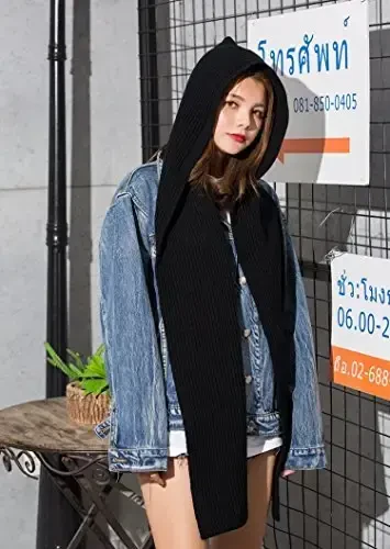 Women Winter 3 in 1 Hooded Hat Scarf Wrap Shawl Crochet Knit Pullover Neckwarmer