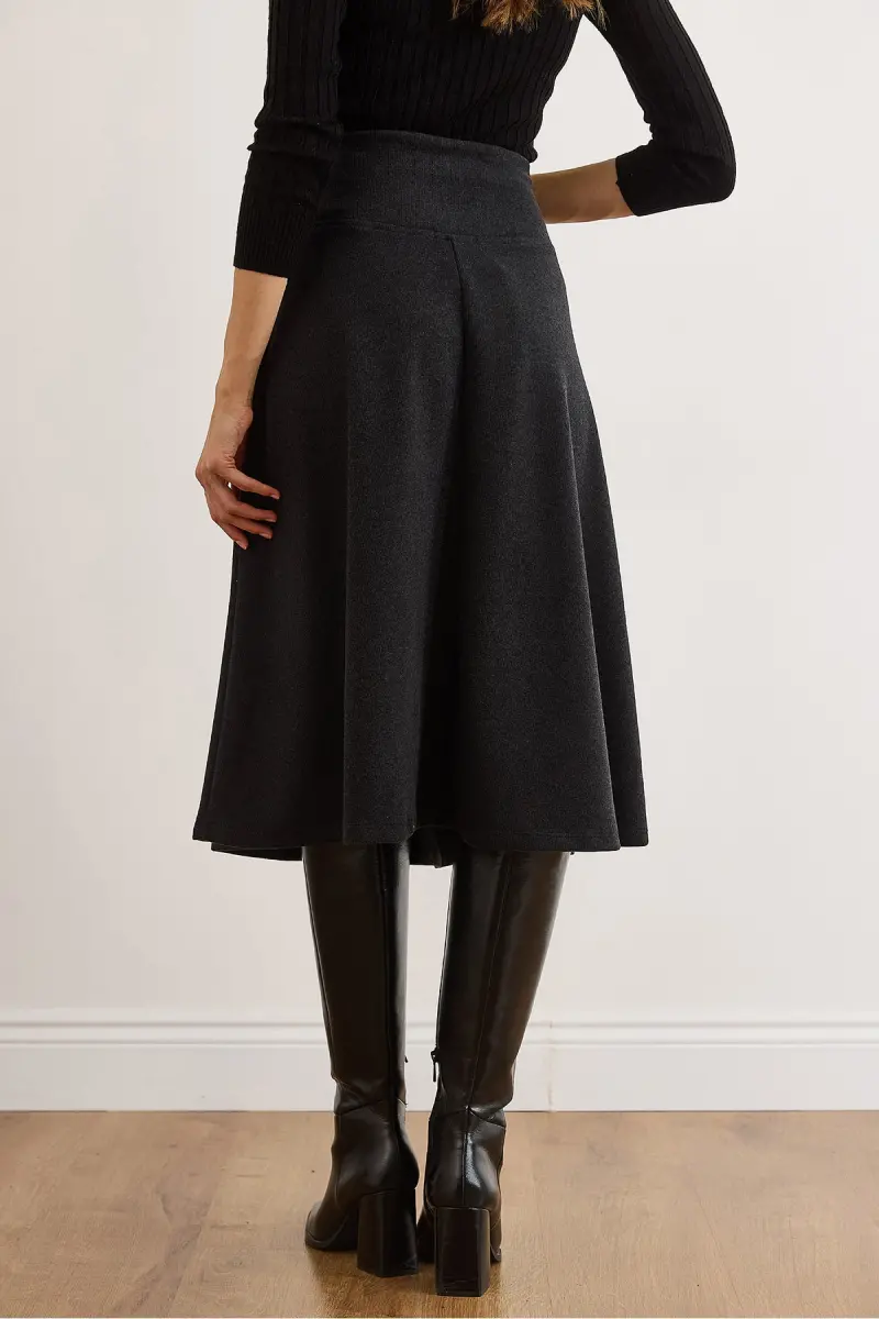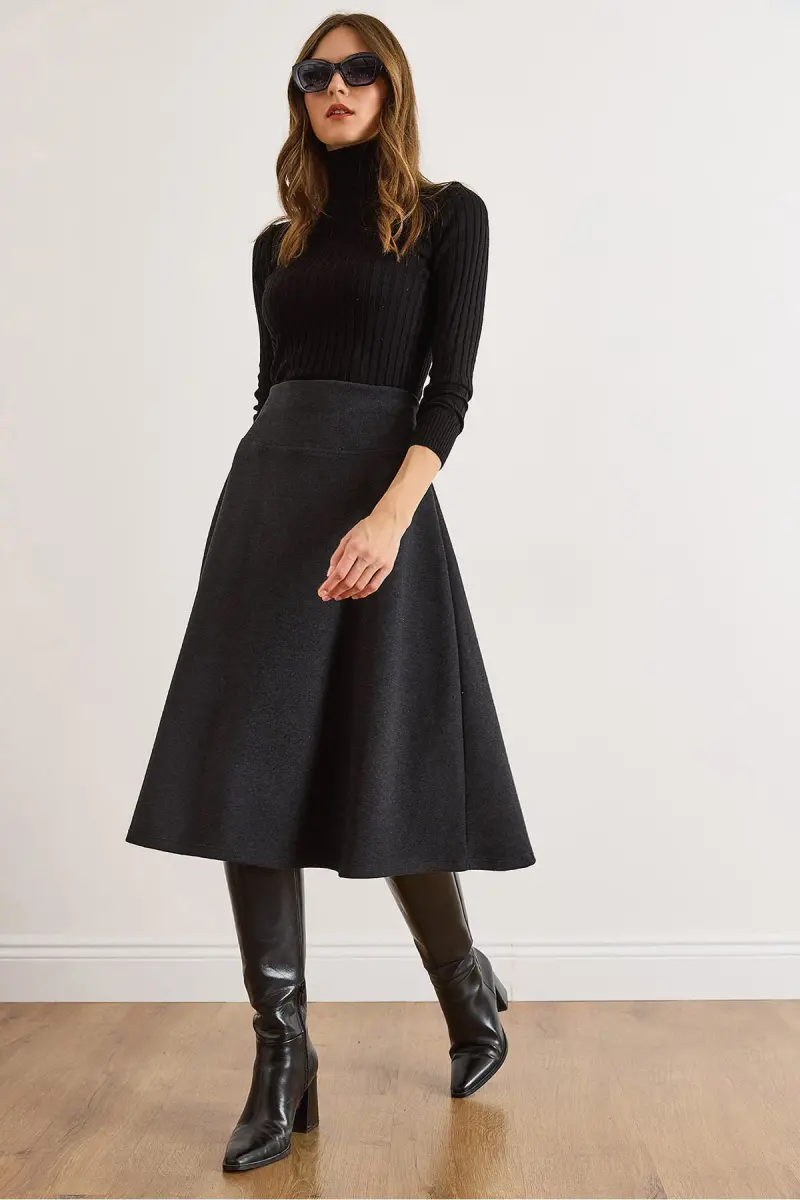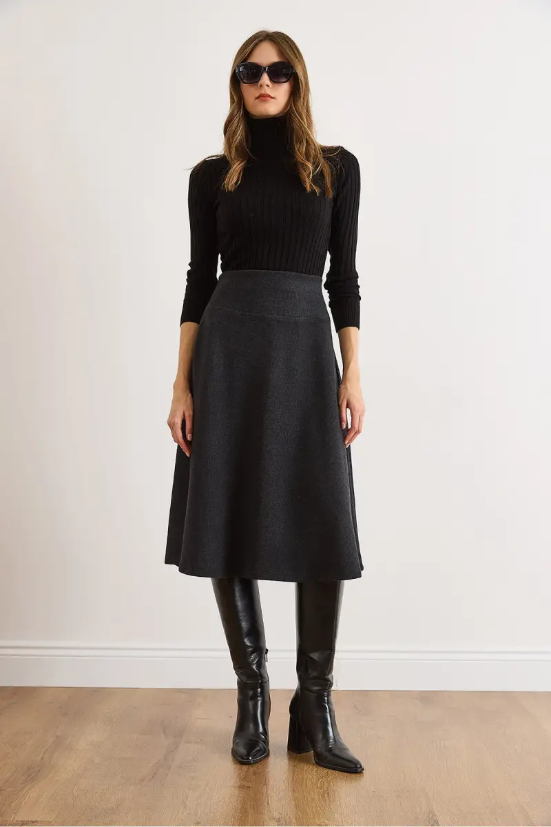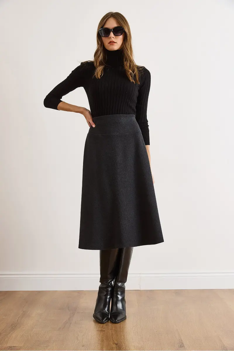 Kadın Koyu Antrasit Beli Bantlı Selanik Çan Etek ETK-19000297-Koyu Antrasit