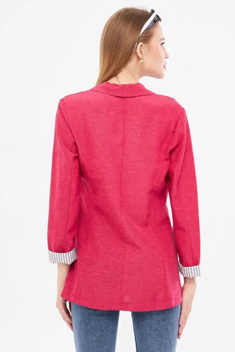 Bu ürün ARMONİKA tarafından gönderilmektedir. Ürünün stok durumu ve diğer satıcı bilgileri için ürün detay sayfasını ziyaret edebilirsiniz. Belirtilen iade koşulları geçerlidir. Koyu fuşya rengi ve şık tasarımı ile dikkat çeken bu blazer ceket, gardırobunuzun vazgeçilmez bir parçası olacak. Hem günlük kullanım hem de özel günleriniz için ideal bir seçimdir.