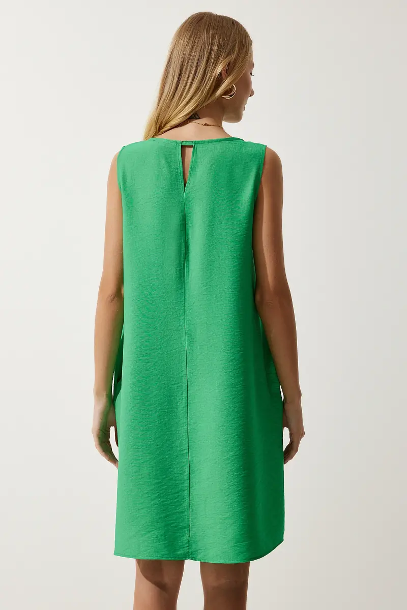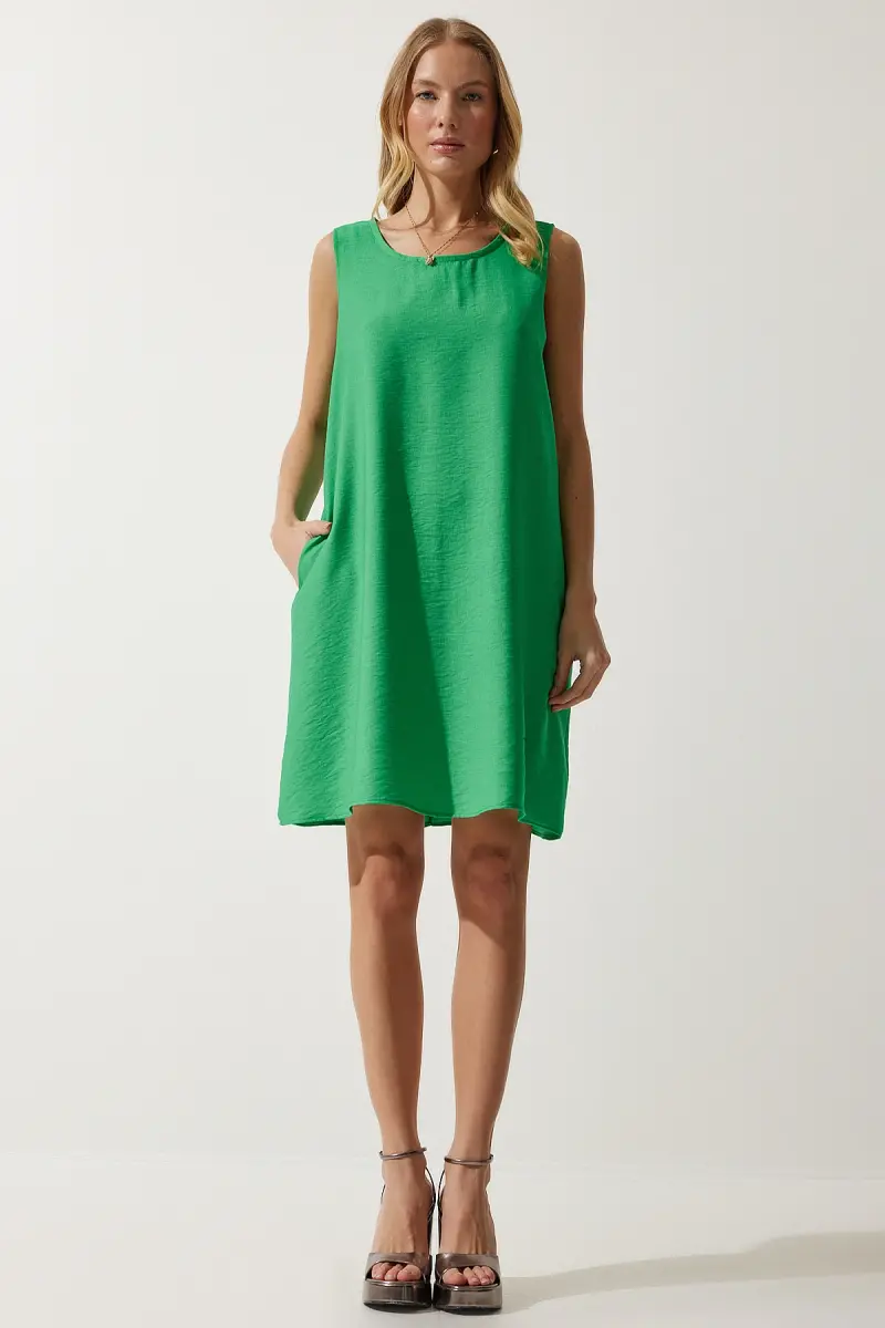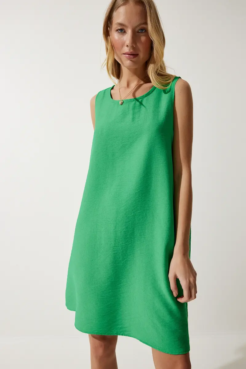 Bu ürün Trendyol tarafından gönderilecektir.Kampanya fiyatından satılmak üzere 100 adetten fazla stok sunulmuştur.İncelemiş olduğunuz ürünün satış fiyatını satıcı belirlemektedir.Bir ürün, birden fazla satıcı tarafından satılabilir. Birden fazla satıcı tarafından satışa sunulan ürünlerin satıcıları ürün için belirledikleri fiyata, satıcı puanlarına, teslimat statülerine, ürünlerdeki promosyonlara, kargonun bedava olup olmamasına ve ürünlerin hızlı teslimat ile teslim edilip edilememesine, ürünlerin stok ve kategorileri bilgilerine göre sıralanmaktadır.Bu üründen en fazla 11 adet sipariş verilebilir. 11 adedin üzerindeki siparişleri Trendyol iptal etme hakkını saklı tutar. Belirlenen bu limit kurumsal siparişlerde geçerli olmayıp, kurumsal siparişler için farklı limitler belirlenebilmektedir.15 gün içinde ücretsiz iade. Detaylı bilgi için [page="return_conditions"]tıklayın .Günlük kullanıma uygun tasarımıyla rahatlığı ve şıklığı bir arada sunan kadın koyu yeşil kolsuz keten viskon çan elbiseBasic koleksiyonun sadeliği ve zamansız tarzıyla her gardıropta yerini alacak bir parçaRegular kalıp sayesinde vücut hatlarını saran ancak sıkmayan konforlu bir kullanım sağlarAline silueti ile farklı vücut tiplerine uyum sağlayarak her kadına hitap eder%50 viskoz ve %50 keten karışımından oluşan materyali, nefes alabilirlik ve dayanıklılık sunarType 1 yıkama talimatına uygun şekilde kolayca temizlenebilirböylece elbisenizin ilk günkü gibi kalmasını sağlarDüz deseniyle sade ve şık bir görünüm elde edilirken, bisiklet yakası modern bir dokunuş katmaktadırTüm yaş gruplarına hitap eden tasarımıyla geniş bir kullanıcı yelpazesine sahiptirKeten kumaşı sayesinde hafif ve serin tutarak yaz aylarında ideal bir seçimdirCep detayları ile fonksiyonellik kazandır