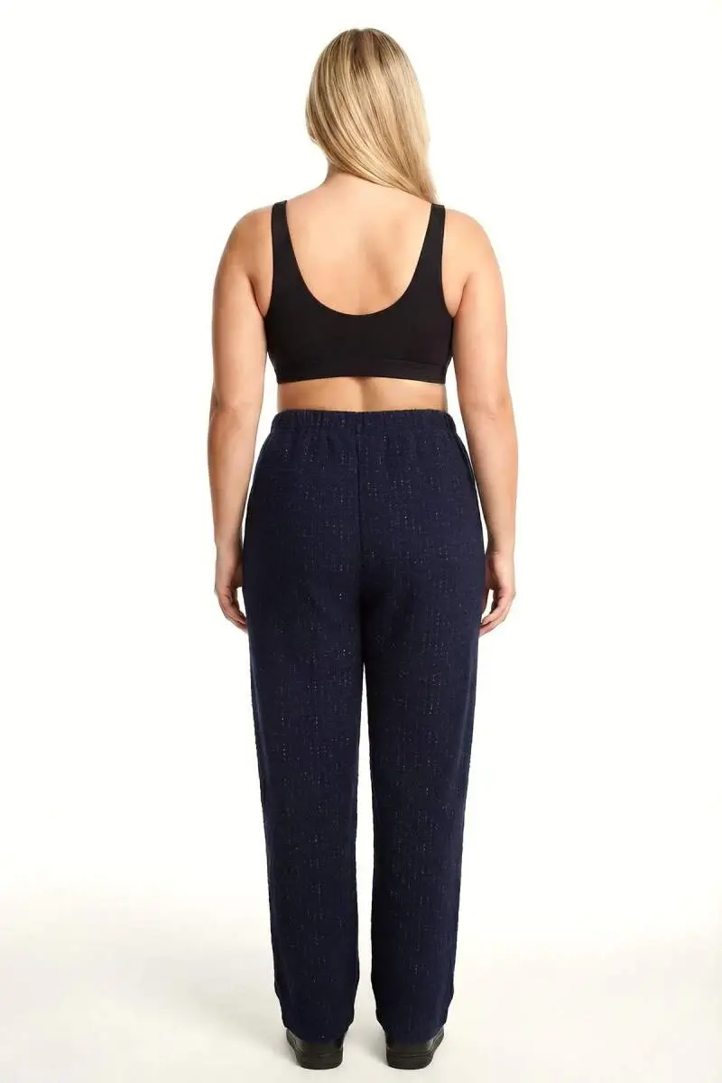 Kadın Lacivert Dokulu Büyük Beden Cepli Pijama Altı