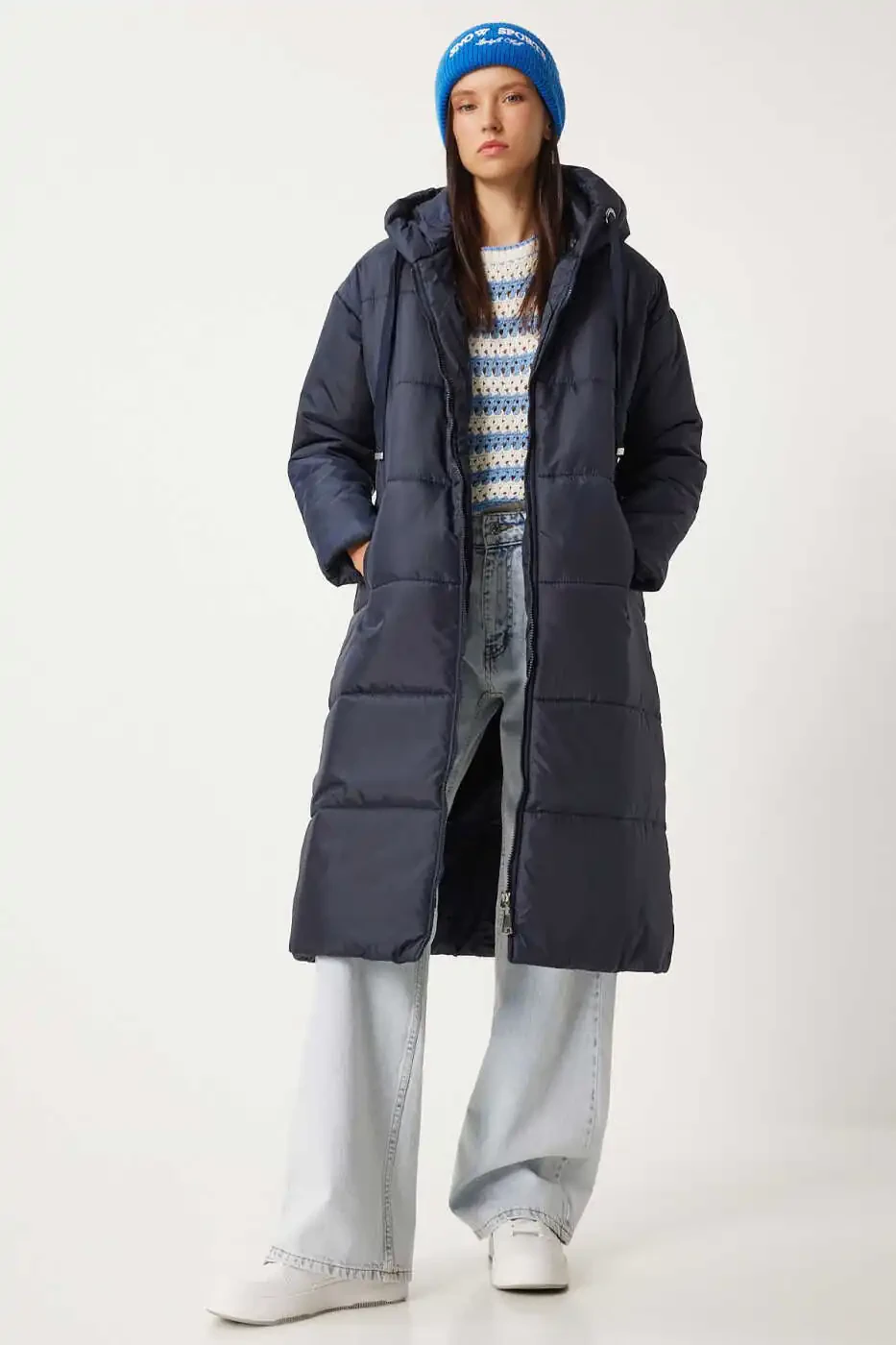 Soğuk havaların vazgeçilmezi, şıklığı ve konforu bir araya getiren Kadın Lacivert Kapüşonlu Uzun Şişme Kaban DD01006 ile tanışın! [page="merchant_info"]Trendyol[/page] güvencesiyle sunulan bu özel tasarım, hem günlük yaşamınızda hem de özel anlarınızda size eşlik etmek için tasarlandı. Modern ve zarif görünümüyle dikkat çeken lacivert rengi, her tarza uyum sağlayan zamansız bir şıklık sunuyor. Şişme silueti, hem sıcak tutarken hem de vücut hatlarınızı nazikçe sararak daha ince bir görünüm kazandırır. Bu kaban, sadece bir giysi değil, aynı zamanda tarzınızın ve yaşam tarzınızın bir yansımasıdır. Kampanya fiyatlarıyla sunulan bu eşsiz ürün, gardırobunuzun en değerli parçalarından biri olacak. Üstelik, 50 adetten fazla stok ile sizlere geniş bir seçenek sunuluyor. Unutmayın, bu kaban sadece sizi sıcak tutmakla kalmayacak, aynı zamanda stil sahibi duruşunuzla da göz kamaştıracak.