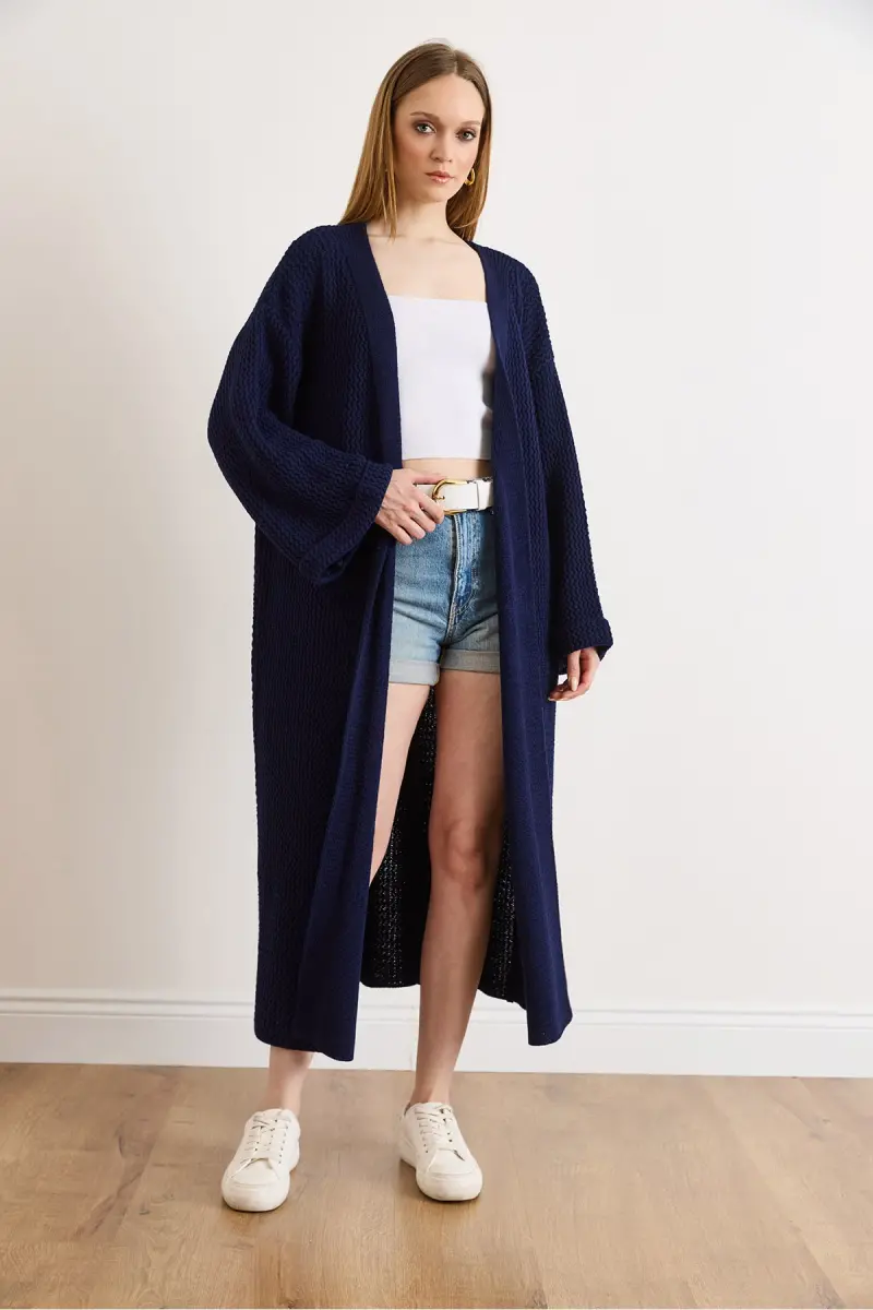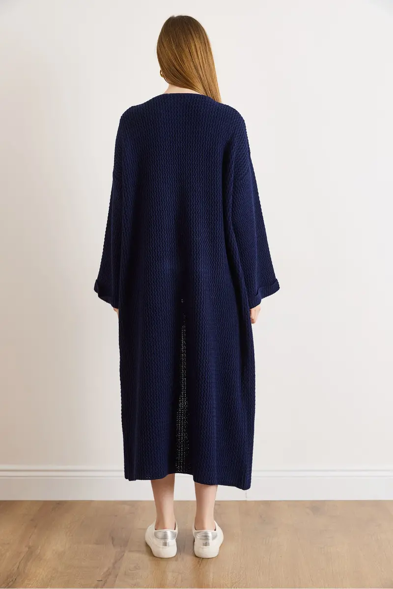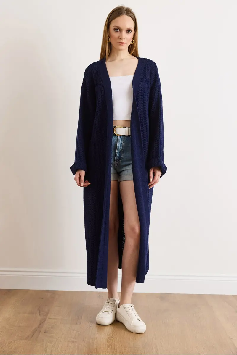 Kadın Lacivert Manşeti Katlamalı Maxi Triko Hırka HRK-19000297-Lacivert