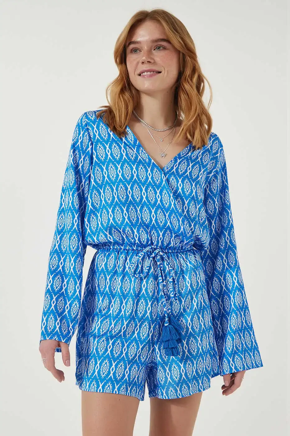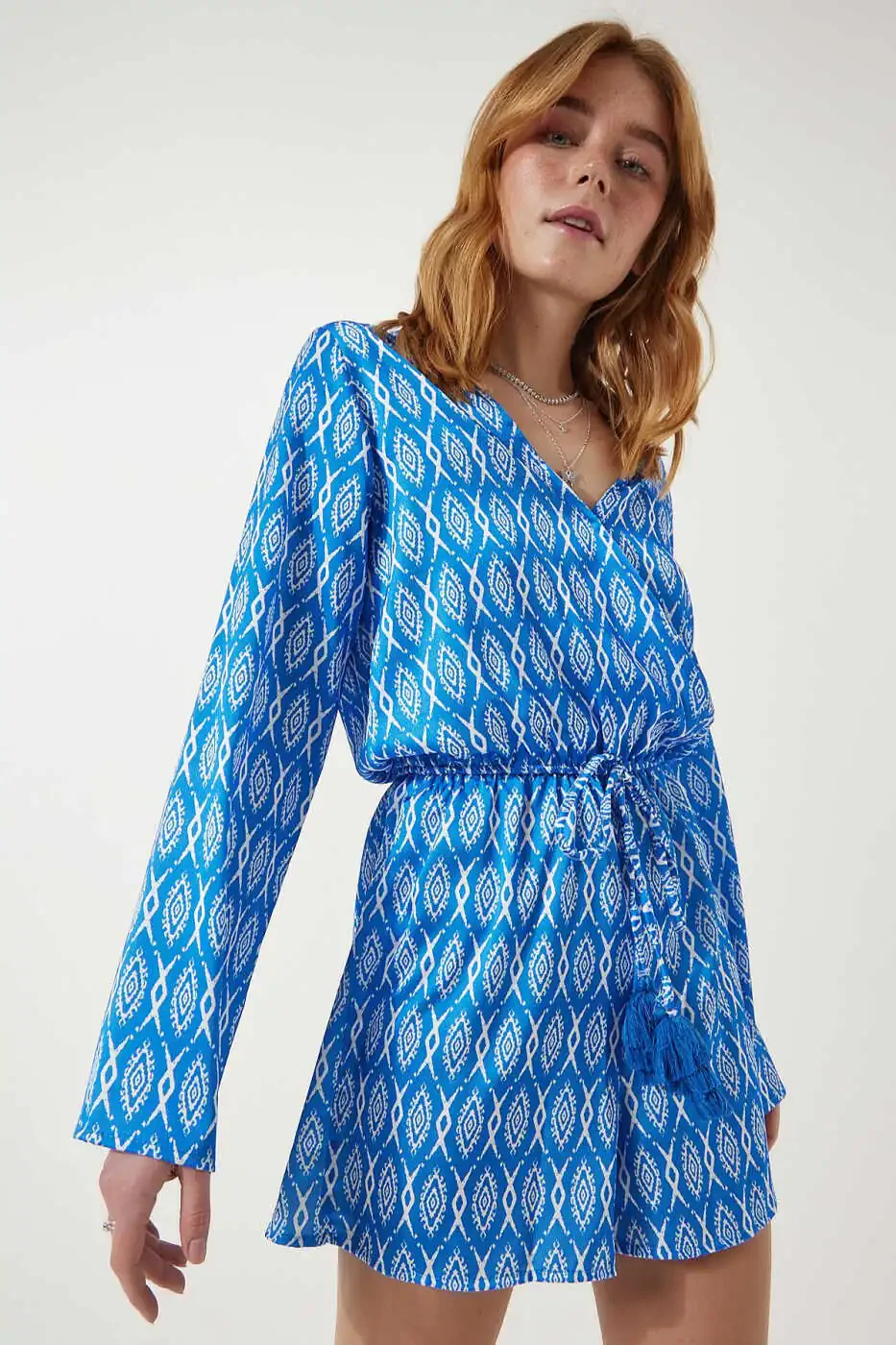 Şıklığın ve rahatlığın mükemmel birleşimi olan Kadın Mavi Desenli Saten Yüzeyli Şık Tulum RG00004, gardırobunuzun vazgeçilmez parçalarından biri olmaya aday! Trendyol güvencesiyle sizlere sunulan bu özel tasarım tulum, göz alıcı mavi rengi ve üzerindeki etkileyici desenleriyle fark yaratmanızı sağlayacak. V yaka detayı feminen bir dokunuş katarken, saten yüzeyi lüks bir hissiyat ve parlak bir görünüm sunar. Günlük hayattan özel davetlere kadar her ortamda rahatlıkla kullanabileceğiniz bu tulum, şıklığı ve konforu bir arada arayan modern kadınlar için ideal bir seçim.Boru paça kesimi ve regular kalıbı sayesinde vücut hatlarınızı kusursuz bir şekilde sarar ve rahat hareket etme özgürlüğü sağlar. Uzun kollu tasarımıyla mevsim geçişlerinde de rahatlıkla kullanabileceğiniz bu tulum, her mevsim şıklığınızdan ödün vermeden rahat etmenizi sağlar. Saten dokusunun pürüzsüz ve yumuşak yapısı cildinizde hoş bir his bırakırken, aynı zamanda göz alıcı bir parlaklık sunar.Kadın Mavi Desenli Saten Yüzeyli Şık Tulum RG00004, basic koleksiyonunun sadeliğini ve şıklığını modern bir yorumla sunuyor. Zamansız tasarımı ve rahat kalıbıyla uzun yıllar severek kullanacağınız bu tulum, gardırobunuzda kurtarıcı bir parça olacak. Type 1 yıkama talimatına uygun olarak kolayca temizlenebilir ve uzun süre ilk günkü şıklığını korur. Farklı vücut tiplerine uyum sağlayan regular boy uzunluğu ile herkese mükemmel bir uyum sağlar. Bu şık ve rahat tulum ile tarzınızı bir üst seviyeye taşıyın!