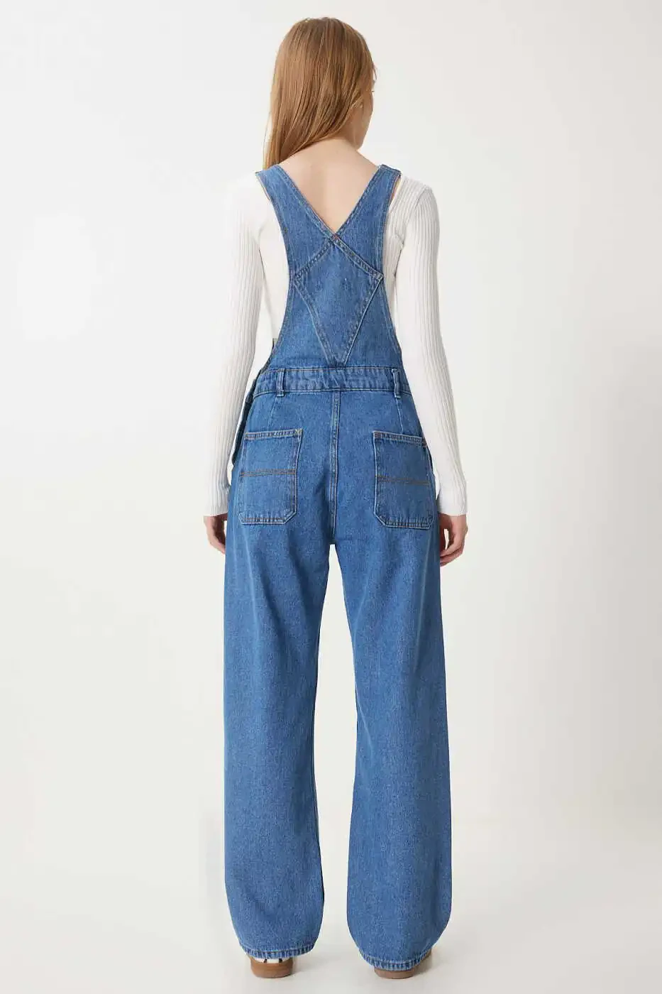 Women's Blue Wide Pocket Denim Dungarees RI00002, made from denim fabric, the indispensable of every season, is designed for modern women who seek comfort and elegance together. This dungaree, which is a candidate to be one of the most favorite pieces of your wardrobe with its timeless design and functional details, will add style to every moment from daily life to special events. Thanks to its wide pockets, you can easily carry your personal belongings such as phone, wallet and have a practical usage experience. With its buttoned suspenders and comfortable fit, it offers comfort throughout the day without restricting your freedom of movement. Its durable denim fabric provides long-lasting use, while its easily combinable structure allows you to create different styles. You can achieve a daily chic look with a basic t-shirt and sneakers, and you can dazzle at night invitations with a stylish blouse and high heels. This dungaree, which appeals to all age groups, is a candidate to be a timeless style icon. Its blue color makes it easy to combine by matching with all kinds of colors and patterns. Its high-quality denim fabric maintains its first-day form even after long-term use, and you will not experience problems such as fading and deformation. In summer, its strapped design offers a cool and spacious use, while in spring and autumn, it can be easily combined with a long-sleeved blouse or sweater worn inside. This dungaree is an ideal choice for women who seek elegance and comfort together and who like practical and useful clothes.