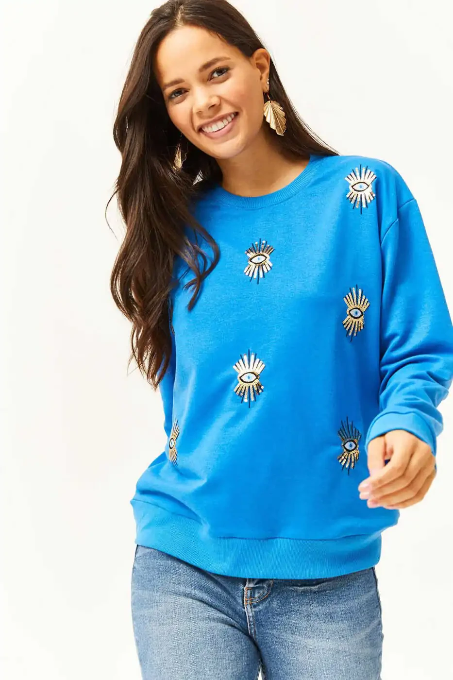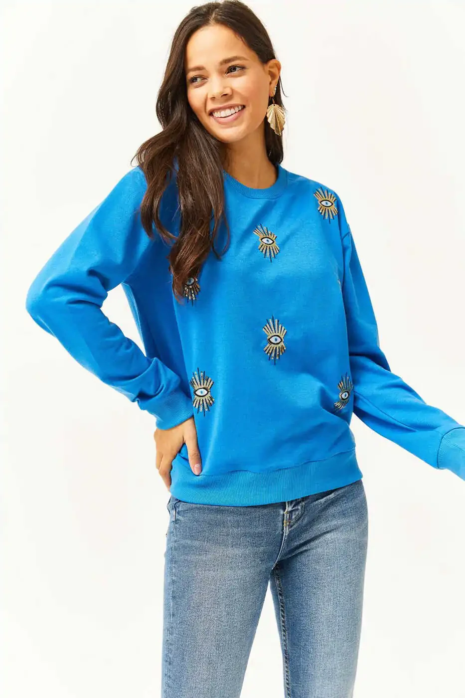 ## Women's Blue Eye Embroidered Seasonal Sweatshirt SWT-19000598