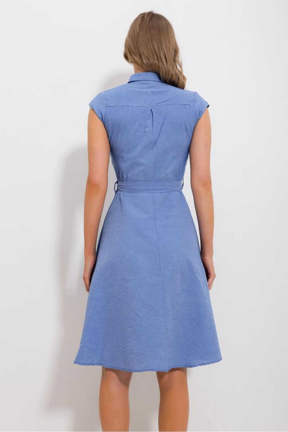 Kısa kollu ve gömlek yaka rahat kesim modeli ile trend bir görünümü olan, şık ve güzel giyinmeyi seven kadınlar için tasarlanmış, Relax Fit, yaza en uygun kumaşıyla yaz aylarının vazgeçilmez modası olacak, kuşak detayıyla stil sahibi, hem sandalet, hem terlikler hem de klasik ayakkabılarla tamamlayabileceğiniz kolsuz dokuma gömlek elbise sizlerle!